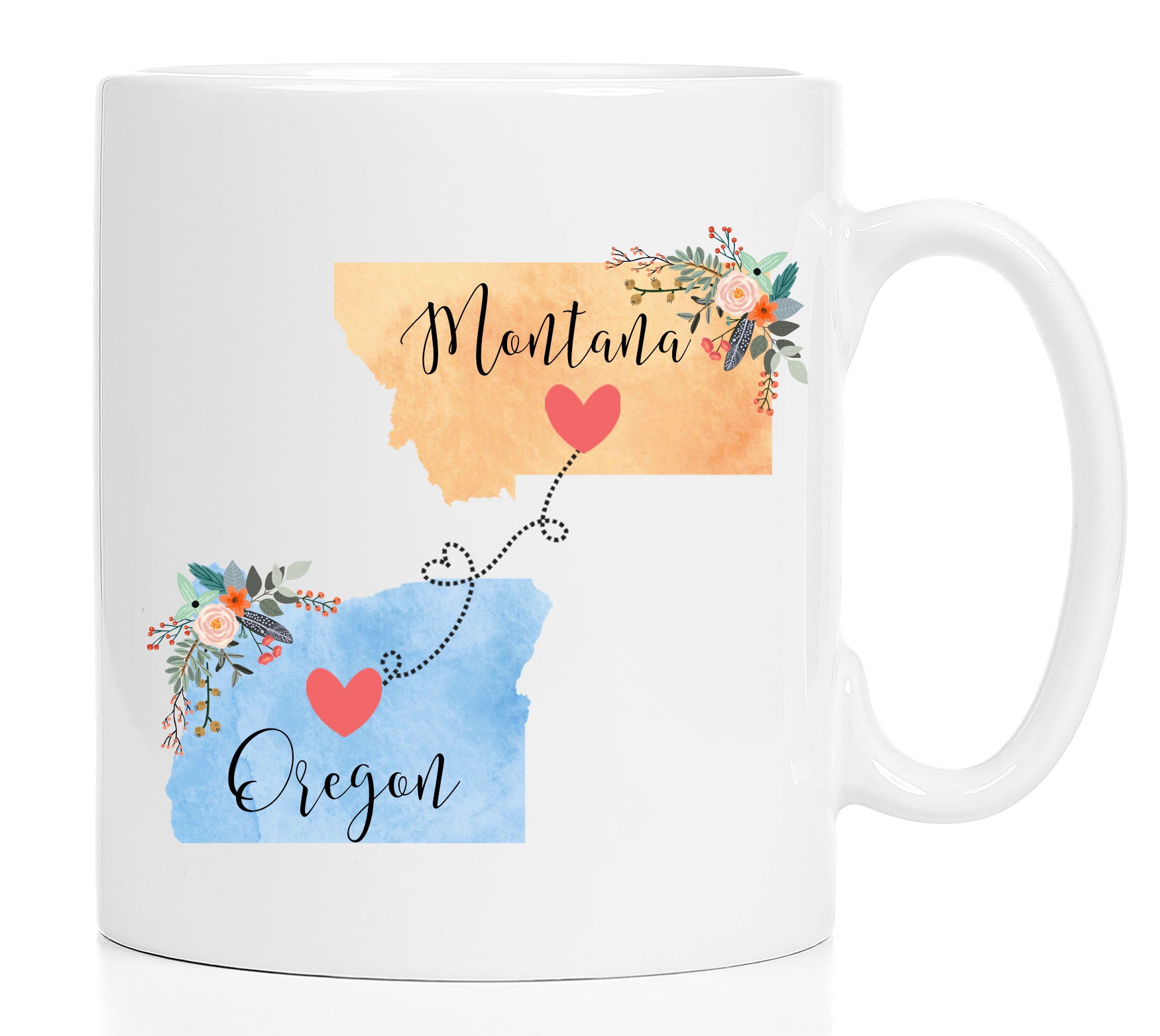 **No Delivery Dates Are Guaranteed. All shipping carriers are currently experiencing delays and transit times can be longer than normal. As a small business, we appreciate your patience and understanding that these circumstances are something that is out of our control. By purchasing this listing you are agreeing that you understand that the shipping date estimation may not be accurate.**Montana Oregon Mug / Oregon Montana Mug /Oregon to Montana Gift / Two State Coffee Cup / Connected States Coffee Mug / Destination Mug