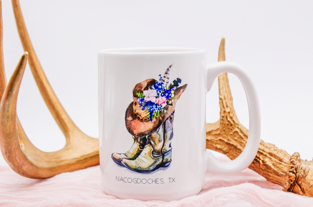 Nacogdoches Cowgirl boots mug is backordered and will ship as soon as it is back in stock.