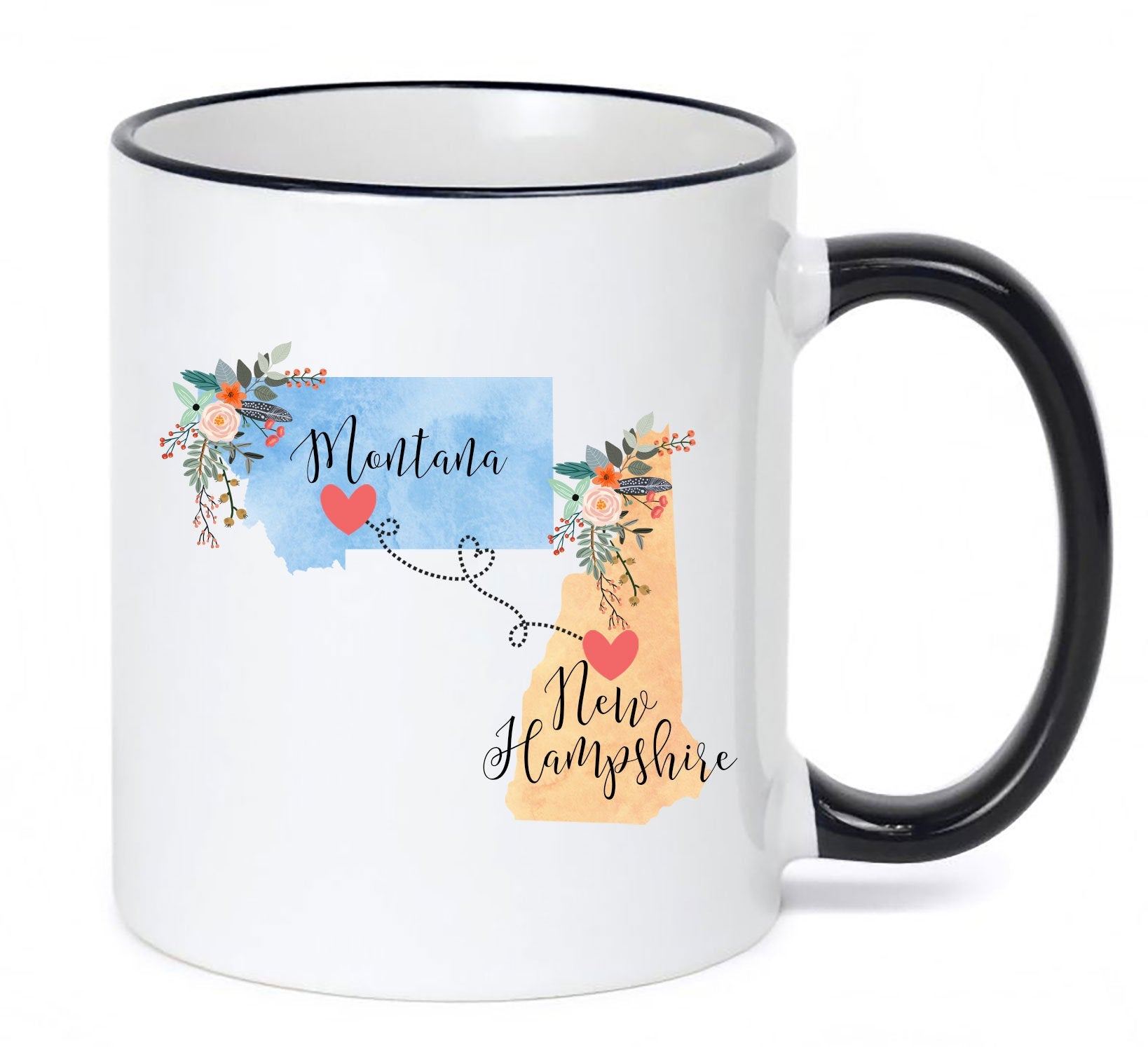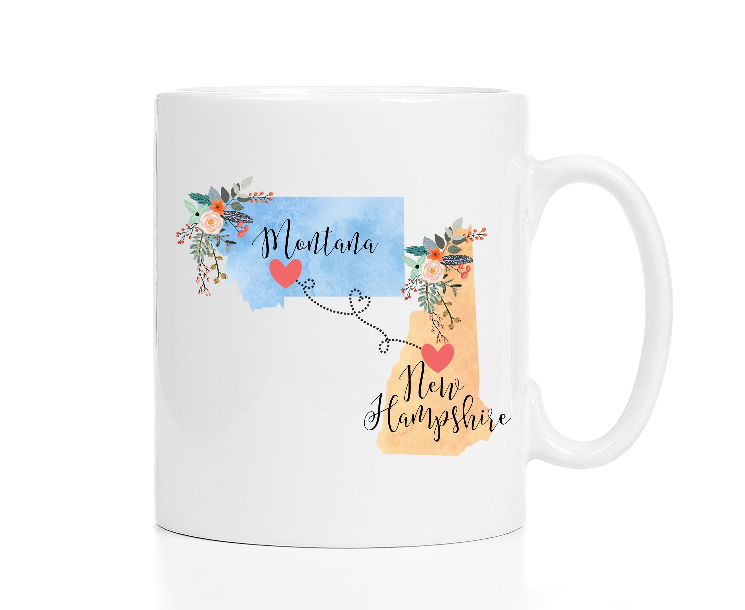 **No Delivery Dates Are Guaranteed. All shipping carriers are currently experiencing delays and transit times can be longer than normal. As a small business, we appreciate your patience and understanding that these circumstances are something that is out of our control. By purchasing this listing you are agreeing that you understand that the shipping date estimation may not be accurate.**New Hampshire Montana Mug / Montana New Hampshire Mug / New Hampshire to Montana Gift / Montana to New Hampshire Gift / 11 or 15 oz