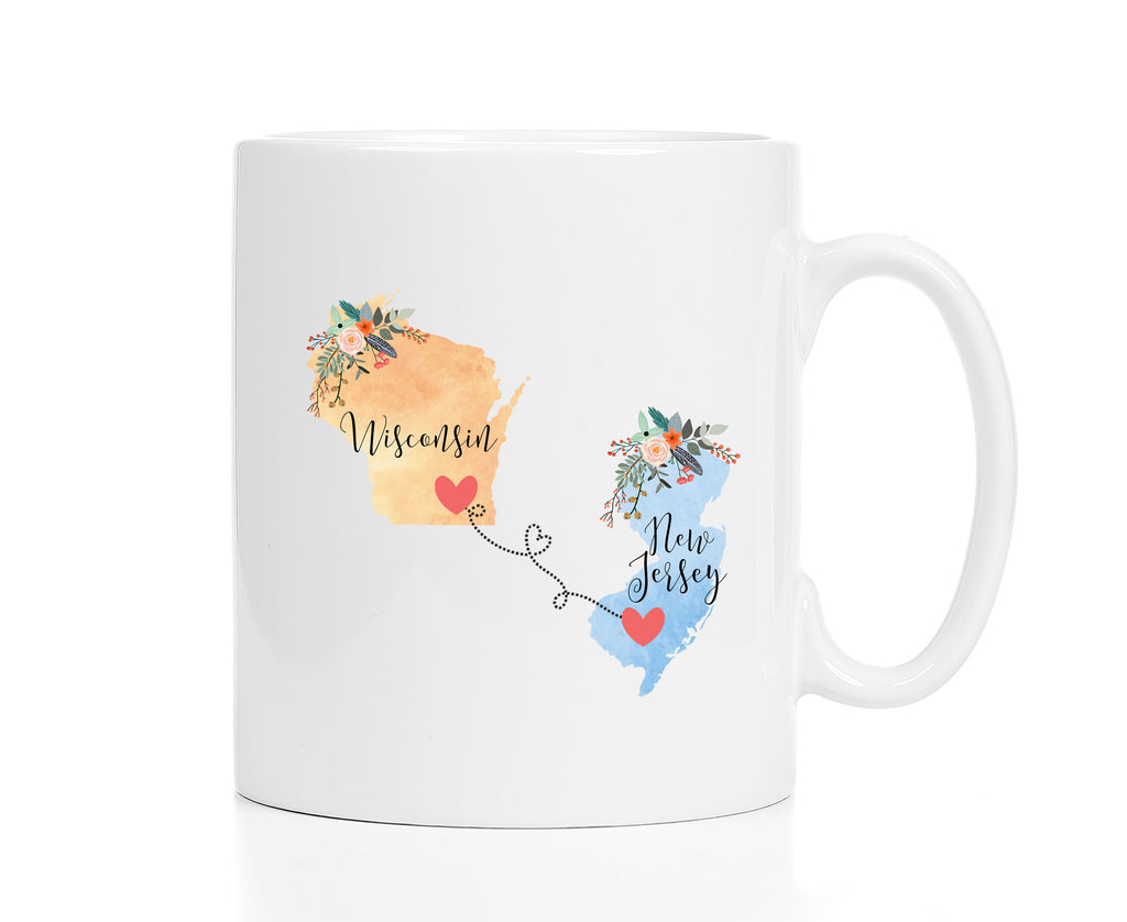 **No Delivery Dates Are Guaranteed. All shipping carriers are currently experiencing delays and transit times can be longer than normal. As a small business, we appreciate your patience and understanding that these circumstances are something that is out of our control. By purchasing this listing you are agreeing that you understand that the shipping date estimation may not be accurate.**New Jersey Wisconsin Mug / Wisconsin New Jersey Mug / New Jersey to Wisconsin Gift / WI to NJ Gift / Summer Vacation Mug / 11 or 15 oz