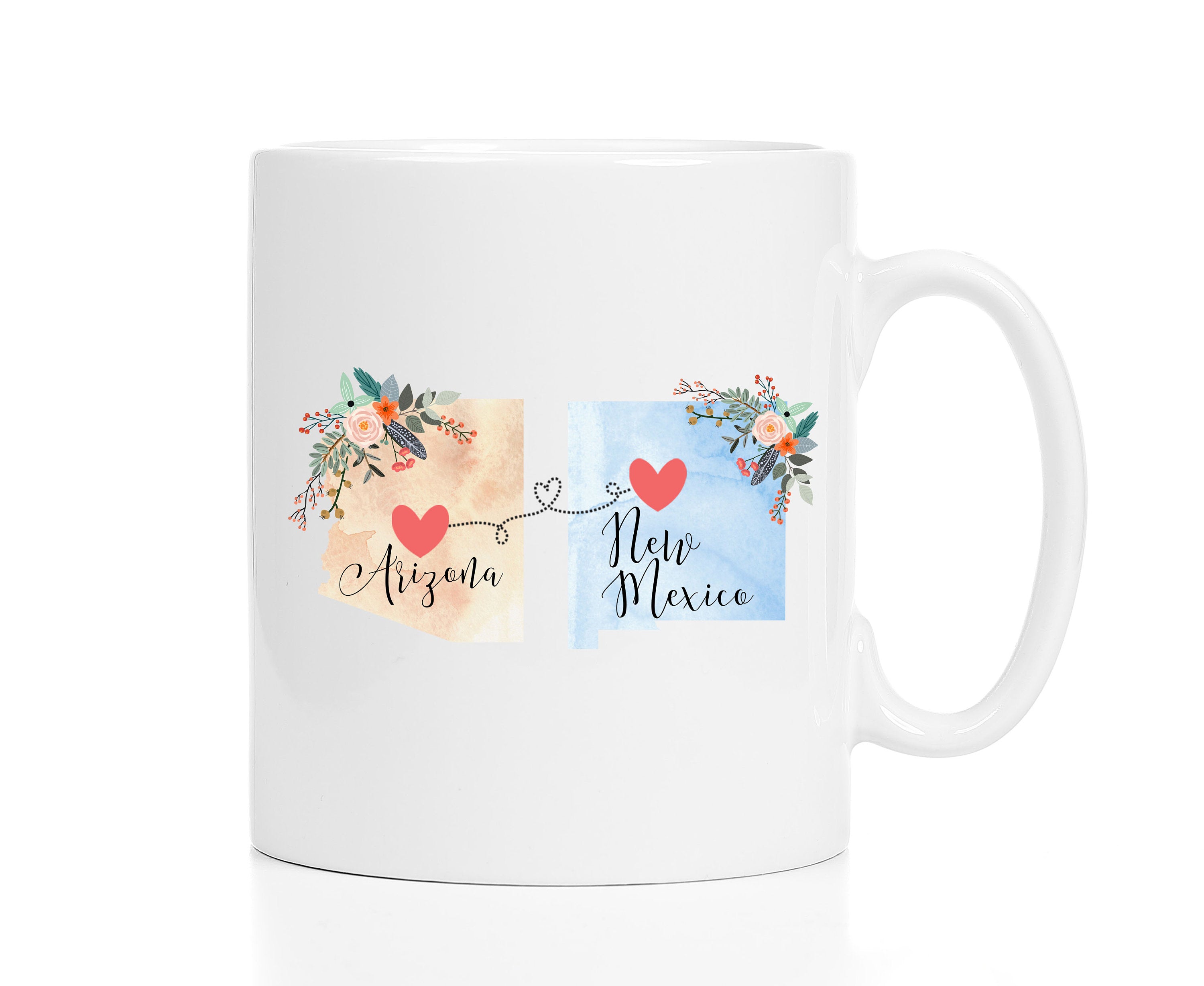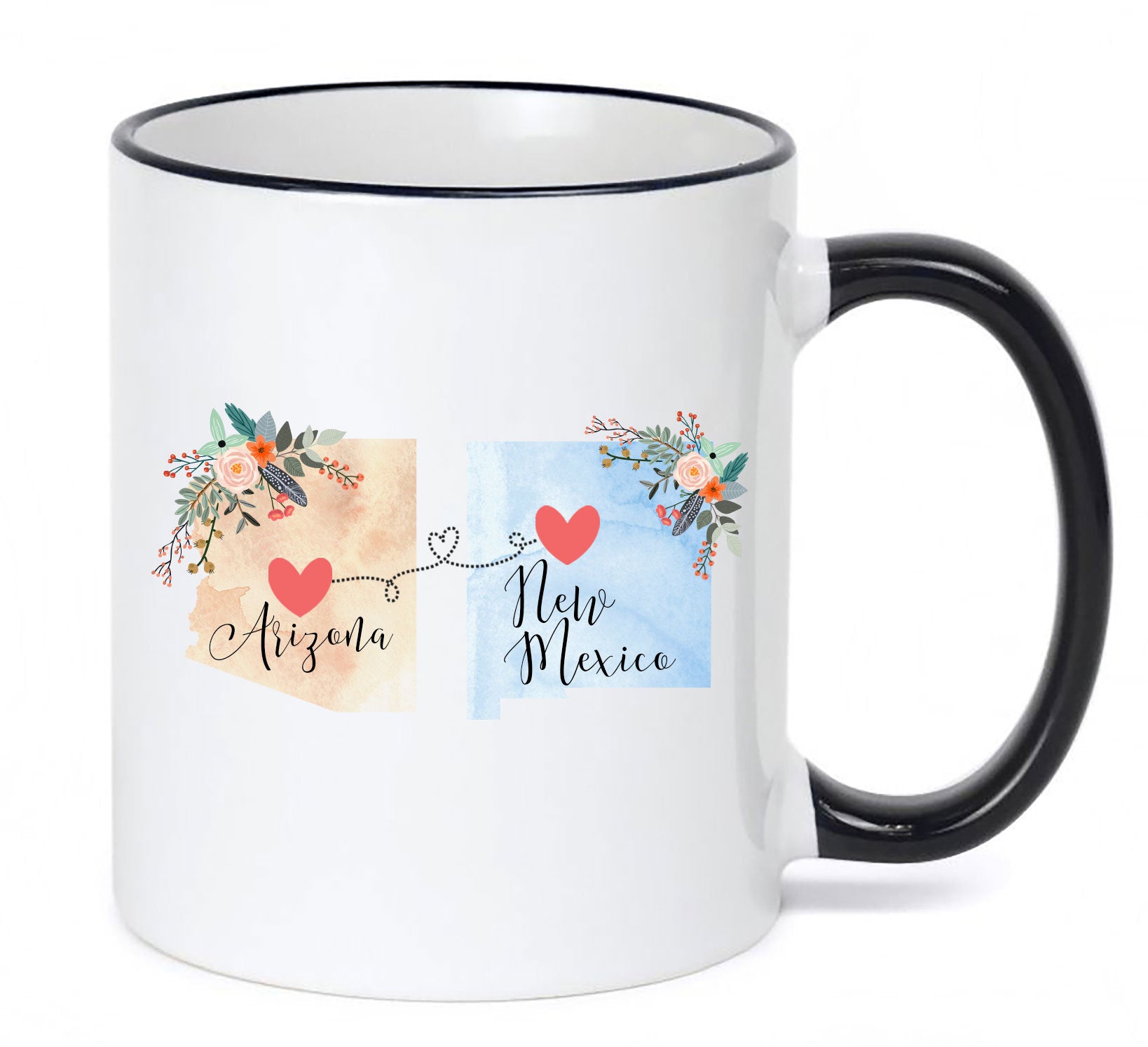 **No Delivery Dates Are Guaranteed. All shipping carriers are currently experiencing delays and transit times can be longer than normal. As a small business, we appreciate your patience and understanding that these circumstances are something that is out of our control. By purchasing this listing you are agreeing that you understand that the shipping date estimation may not be accurate.**New Mexico Arizona Mug / New Mexico to Arizona Mug / New Mexico Arizona Gift / New Mexico Arizona Coffee Cup 11 or 15 oz