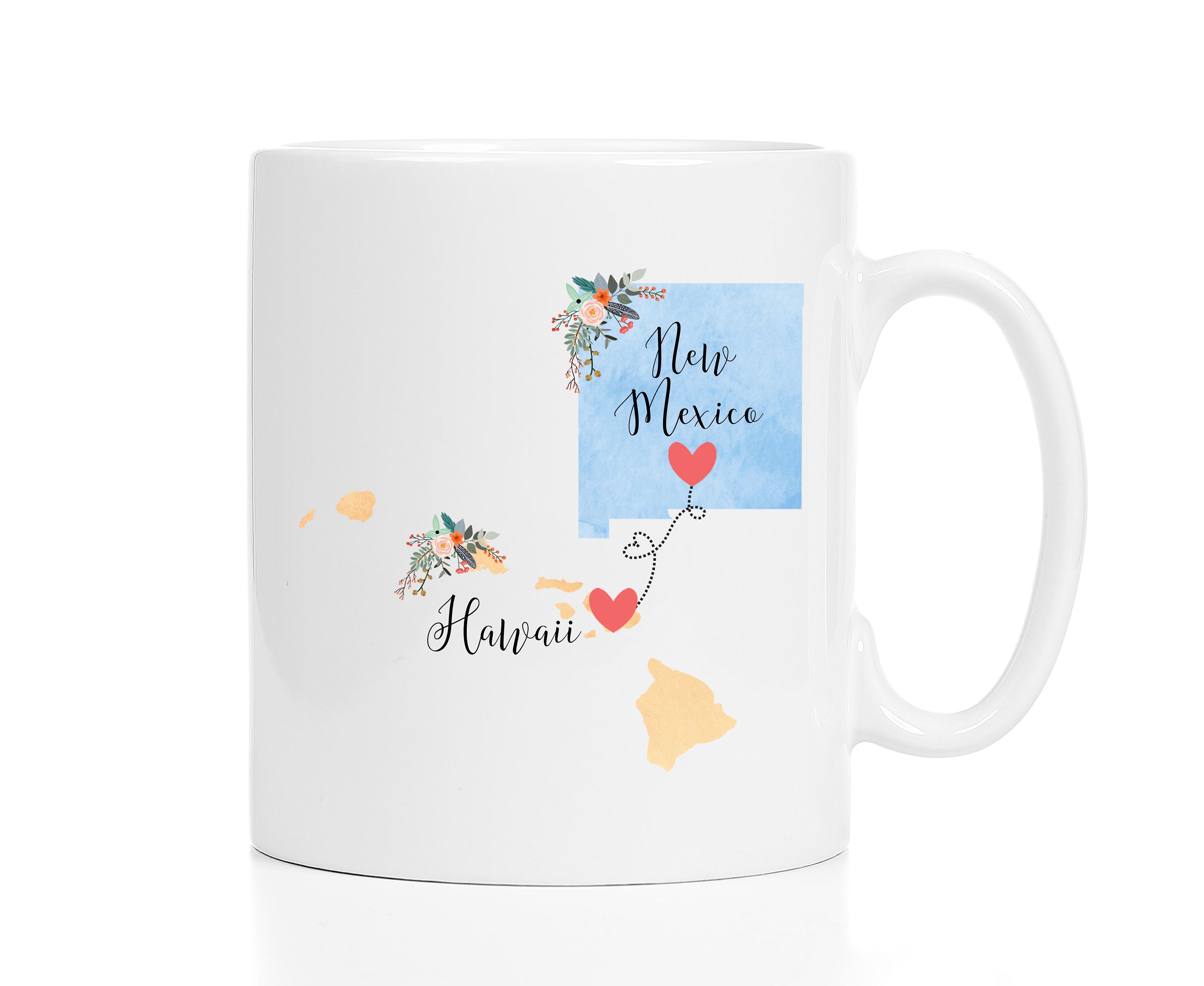 **No Delivery Dates Are Guaranteed. All shipping carriers are currently experiencing delays and transit times can be longer than normal. As a small business, we appreciate your patience and understanding that these circumstances are something that is out of our control. By purchasing this listing you are agreeing that you understand that the shipping date estimation may not be accurate.**New Mexico Hawaii Mug / Hawaii New Mexico Gift / New Mexico to Hawaii Coffee Mug / Hawaii to New Mexico Cup / Hostess Gift / 11 or 15 oz