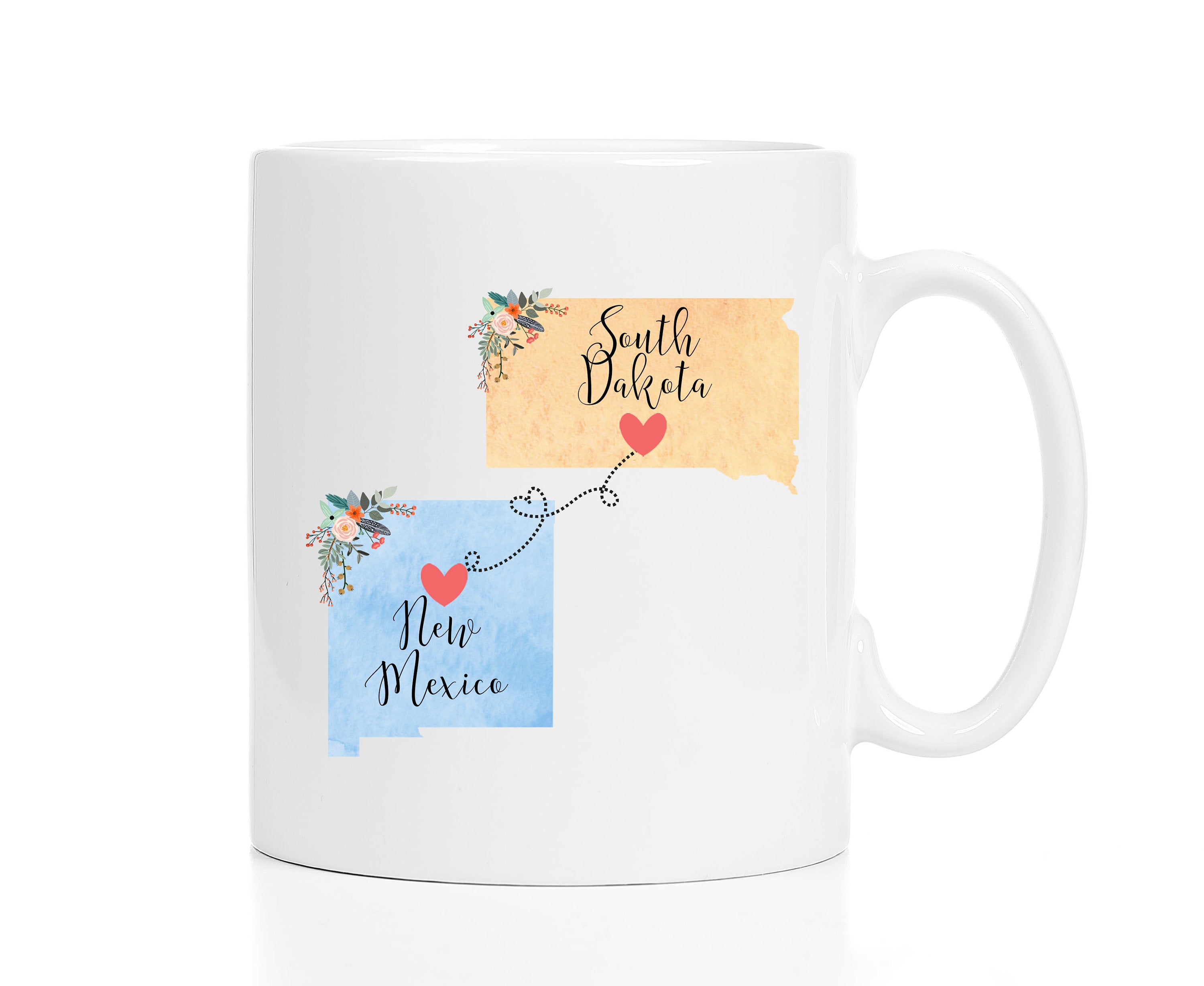 **No Delivery Dates Are Guaranteed. All shipping carriers are currently experiencing delays and transit times can be longer than normal. As a small business, we appreciate your patience and understanding that these circumstances are something that is out of our control. By purchasing this listing you are agreeing that you understand that the shipping date estimation may not be accurate.**New Mexico South Dakota Mug / South Dakota New Mexico Gift / New Mexico to South Dakota Coffee Mug / Hostess Gift / 11 or 15 oz