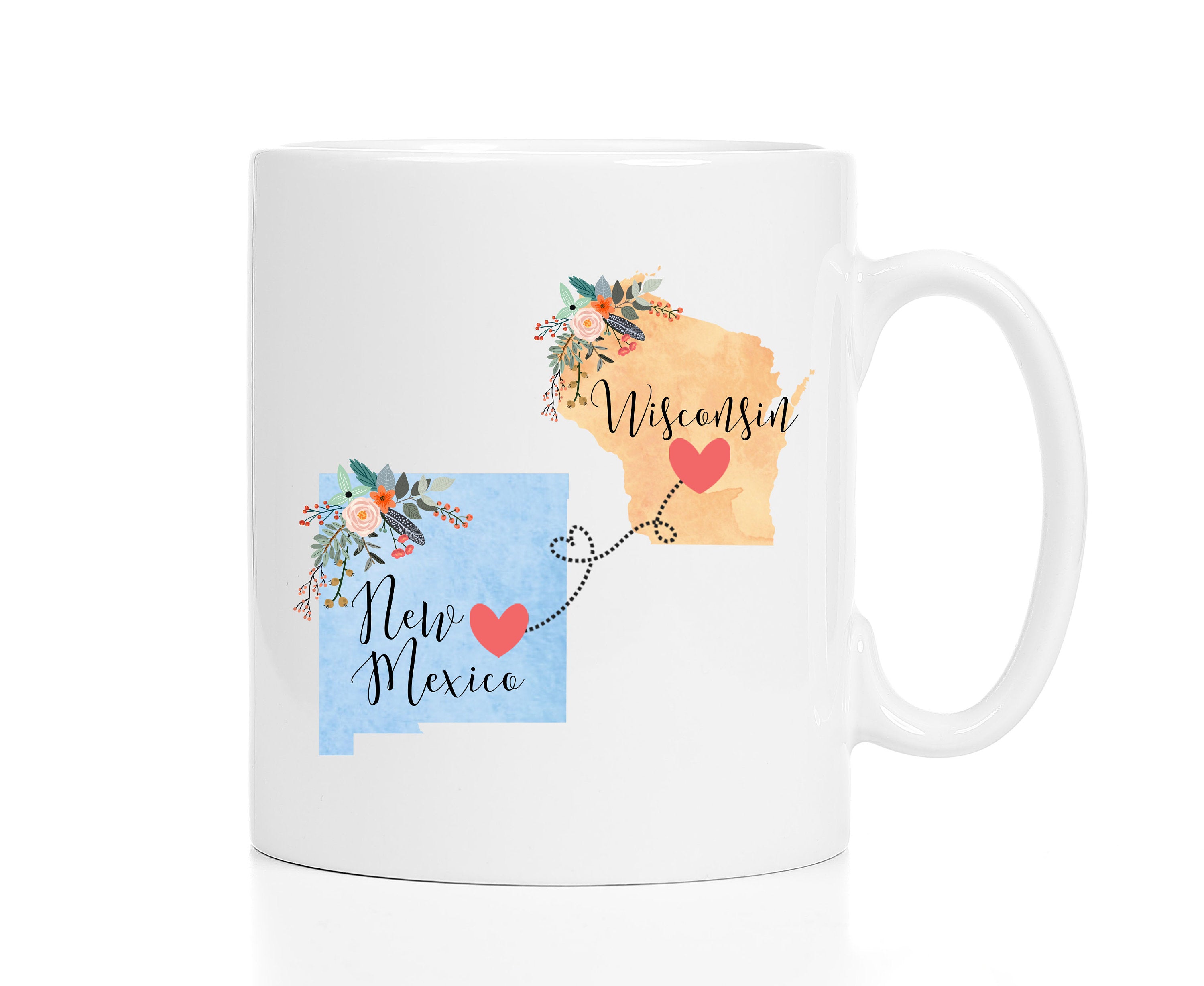 **No Delivery Dates Are Guaranteed. All shipping carriers are currently experiencing delays and transit times can be longer than normal. As a small business, we appreciate your patience and understanding that these circumstances are something that is out of our control. By purchasing this listing you are agreeing that you understand that the shipping date estimation may not be accurate.**New Mexico Wisconsin Mug / New Mexico to Wisconsin Mug / New Mexico Wisconsin Gift / New Mexico Wisconsin Coffee Cup 11 or 15 oz