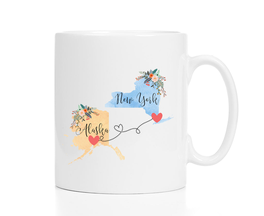 **No Delivery Dates Are Guaranteed. All shipping carriers are currently experiencing delays and transit times can be longer than normal. As a small business, we appreciate your patience and understanding that these circumstances are something that is out of our control. By purchasing this listing you are agreeing that you understand that the shipping date estimation may not be accurate.**New York Alaska Mug / Alaska New York Mug / New York to Alaska Gift / Alaska to New York Mug / 11 or 15 oz