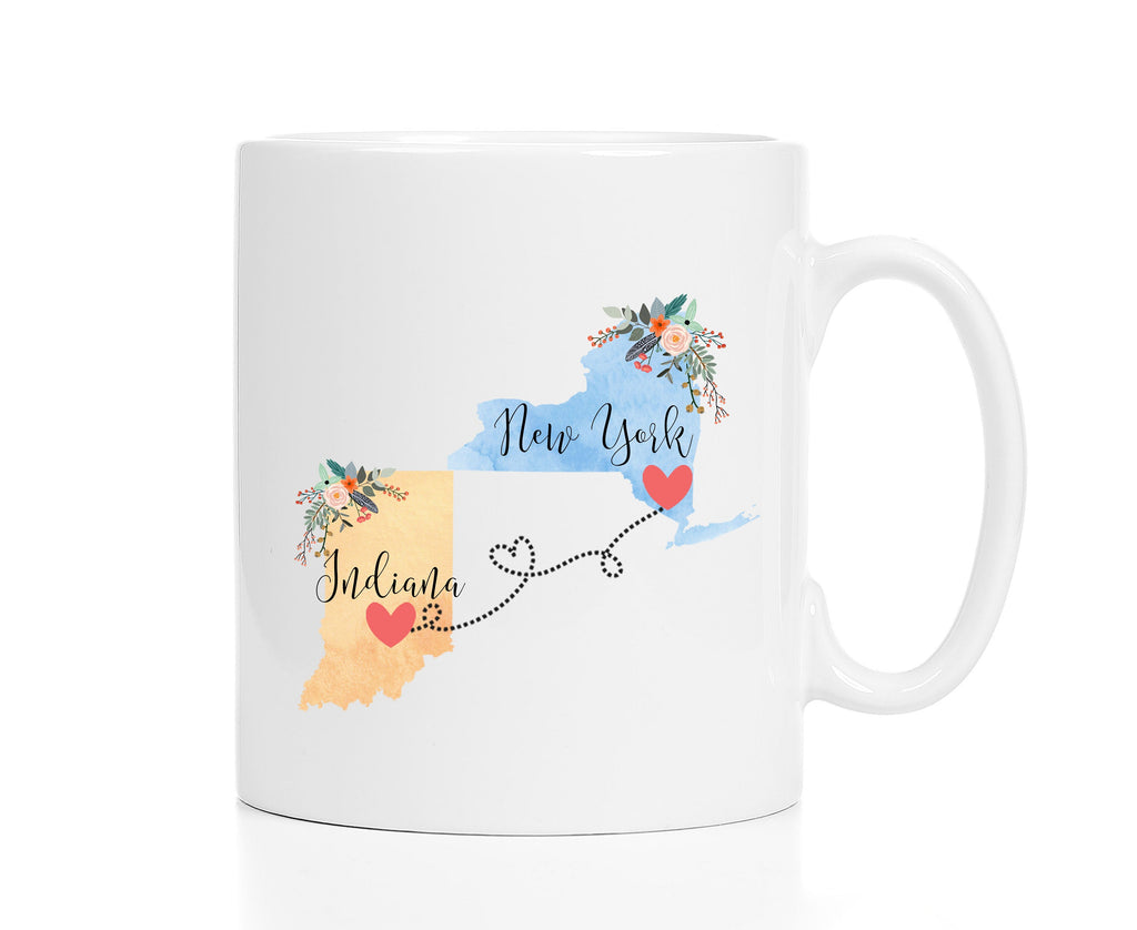 **No Delivery Dates Are Guaranteed. All shipping carriers are currently experiencing delays and transit times can be longer than normal. As a small business, we appreciate your patience and understanding that these circumstances are something that is out of our control. By purchasing this listing you are agreeing that you understand that the shipping date estimation may not be accurate.**New York Indiana Mug / Indiana New York Mug / New York to Indiana Gift / Indiana to New York Mug 11 or 15 oz