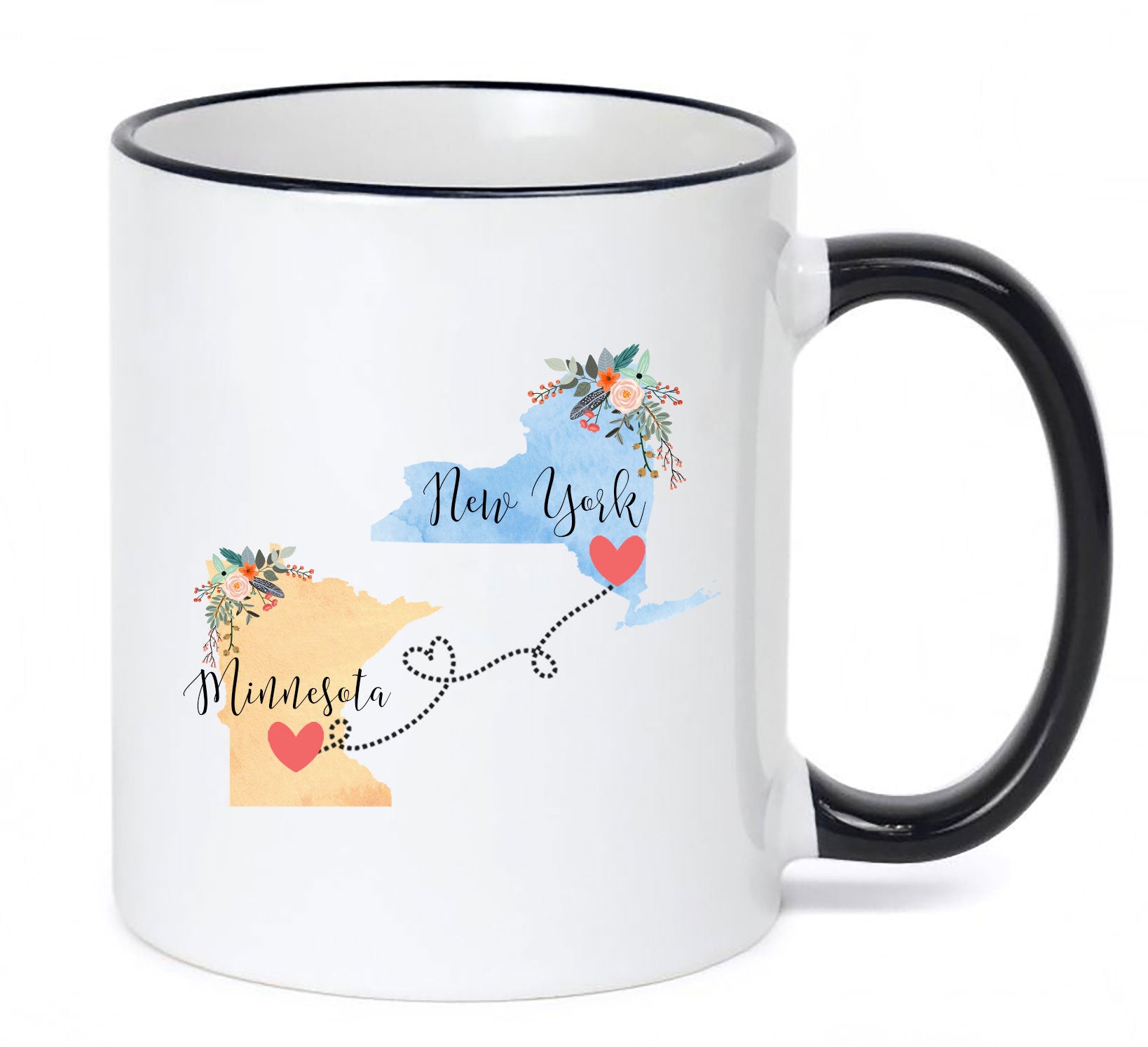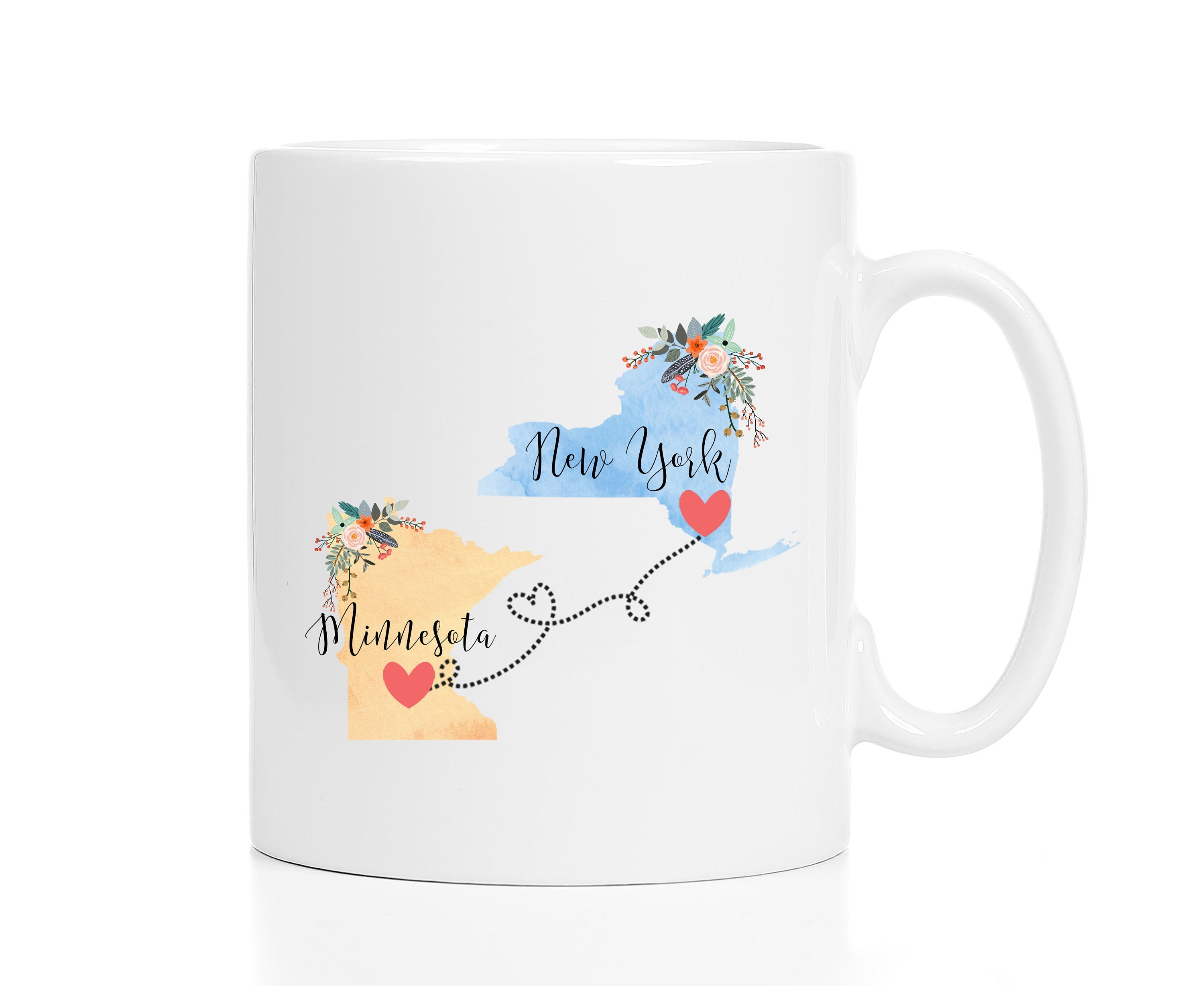 **No Delivery Dates Are Guaranteed. All shipping carriers are currently experiencing delays and transit times can be longer than normal. As a small business, we appreciate your patience and understanding that these circumstances are something that is out of our control. By purchasing this listing you are agreeing that you understand that the shipping date estimation may not be accurate.**New York Minnesota Mug / Minnesota New York Mug / New York to Minnesota Gift / Minnesota to New York Mug 11 or 15 oz