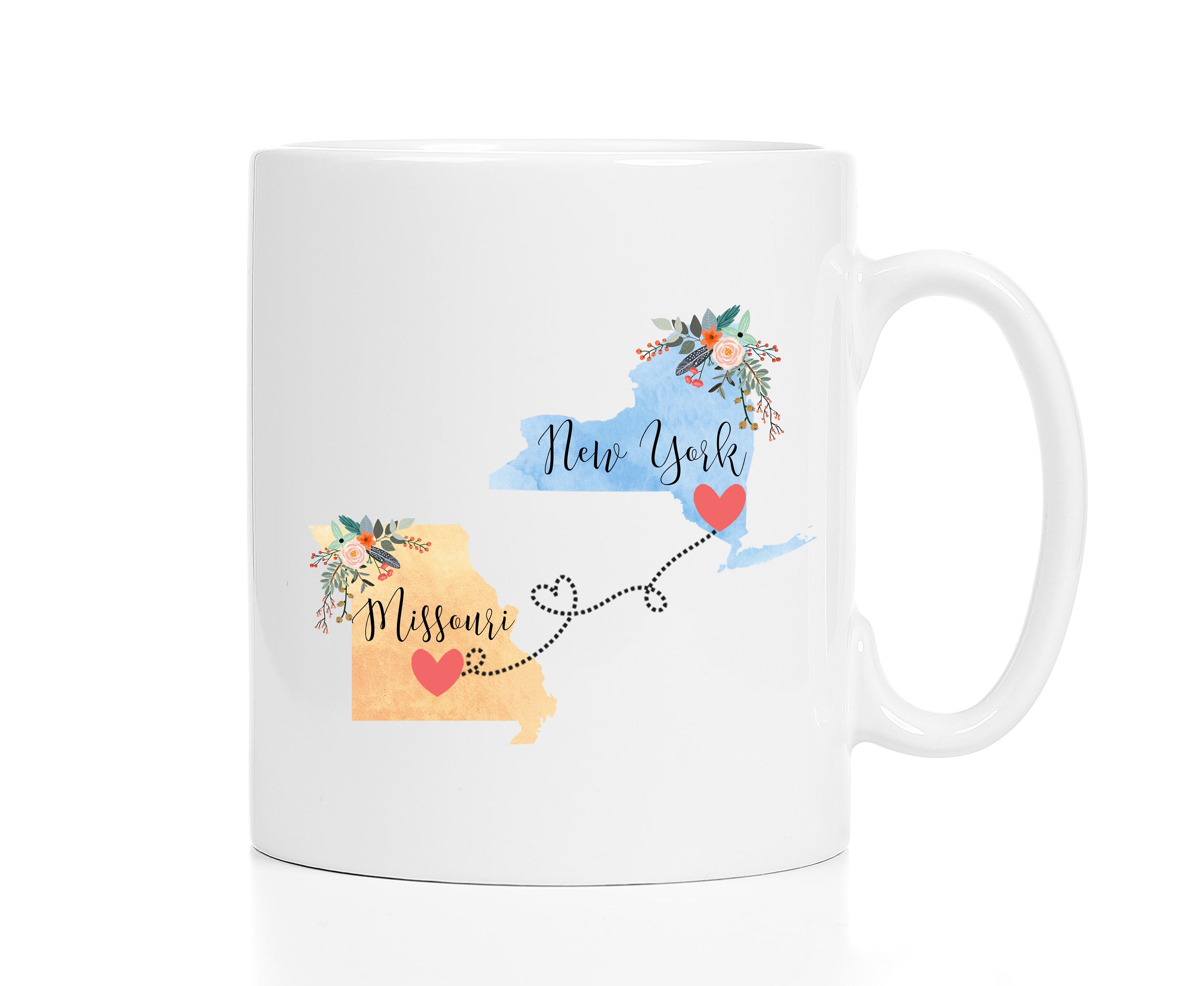 **No Delivery Dates Are Guaranteed. All shipping carriers are currently experiencing delays and transit times can be longer than normal. As a small business, we appreciate your patience and understanding that these circumstances are something that is out of our control. By purchasing this listing you are agreeing that you understand that the shipping date estimation may not be accurate.**New York Missouri Mug / Missouri New York Mug / New York to Missouri Gift / Missouri to New York Mug 11 or 15 oz