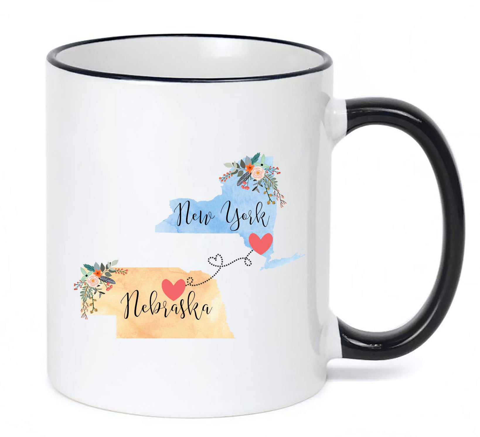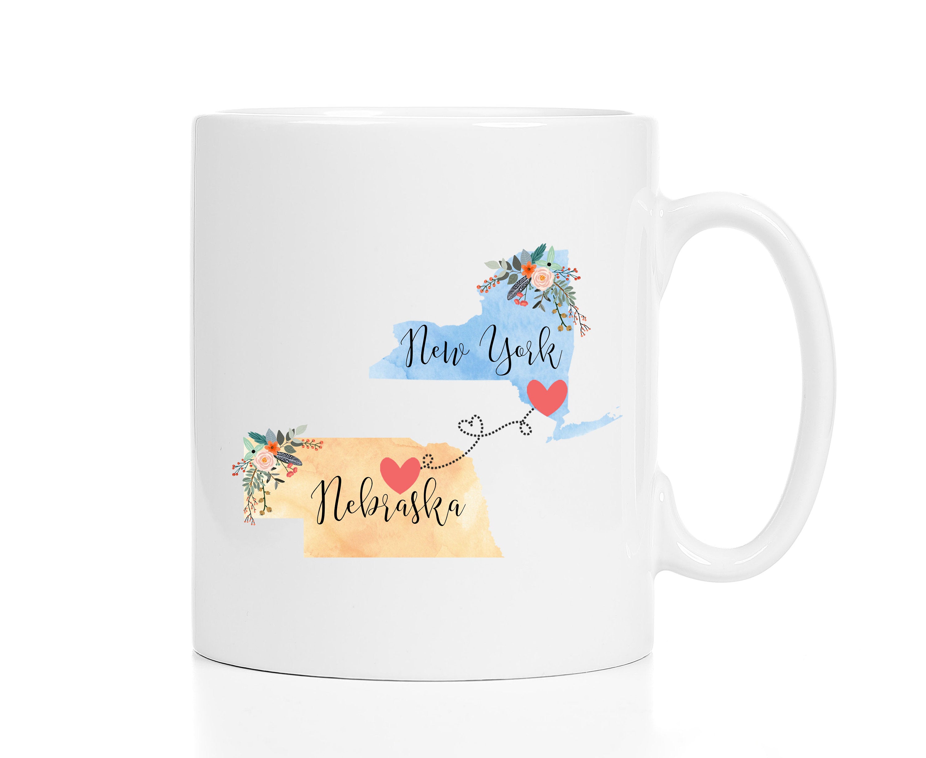**No Delivery Dates Are Guaranteed. All shipping carriers are currently experiencing delays and transit times can be longer than normal. As a small business, we appreciate your patience and understanding that these circumstances are something that is out of our control. By purchasing this listing you are agreeing that you understand that the shipping date estimation may not be accurate.**New York Nebraska Mug / Nebraska New York Mug / New York to Nebraska Gift / Nebraska to New York Mug / 11 or 15 oz