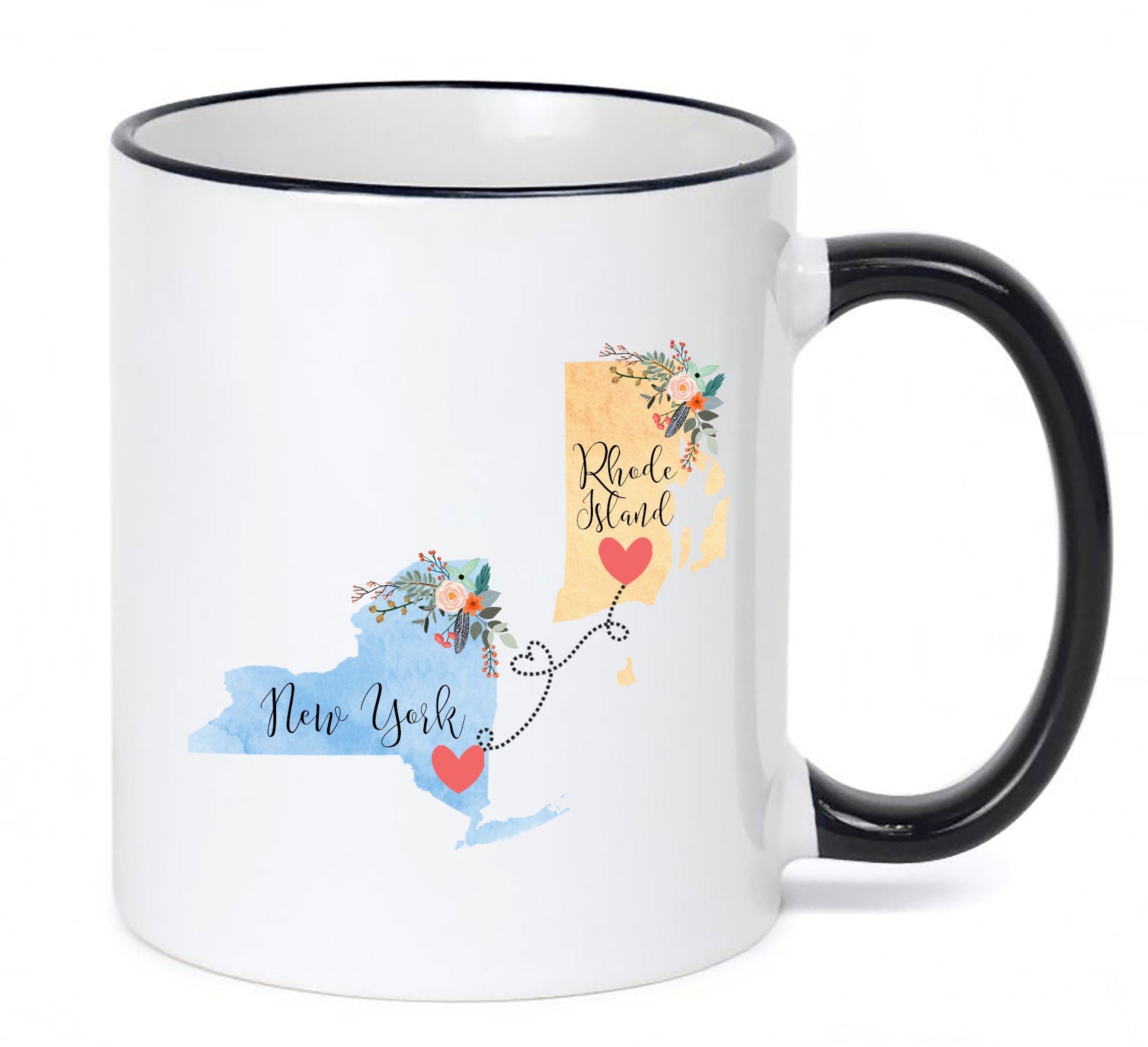 **No Delivery Dates Are Guaranteed. All shipping carriers are currently experiencing delays and transit times can be longer than normal. As a small business, we appreciate your patience and understanding that these circumstances are something that is out of our control. By purchasing this listing you are agreeing that you understand that the shipping date estimation may not be accurate.**New York Rhode Island Mug / Rhode Island New York Mug / New York to Rhode Island Gift / Rhode Island to New York Mug / 11 or 15 oz