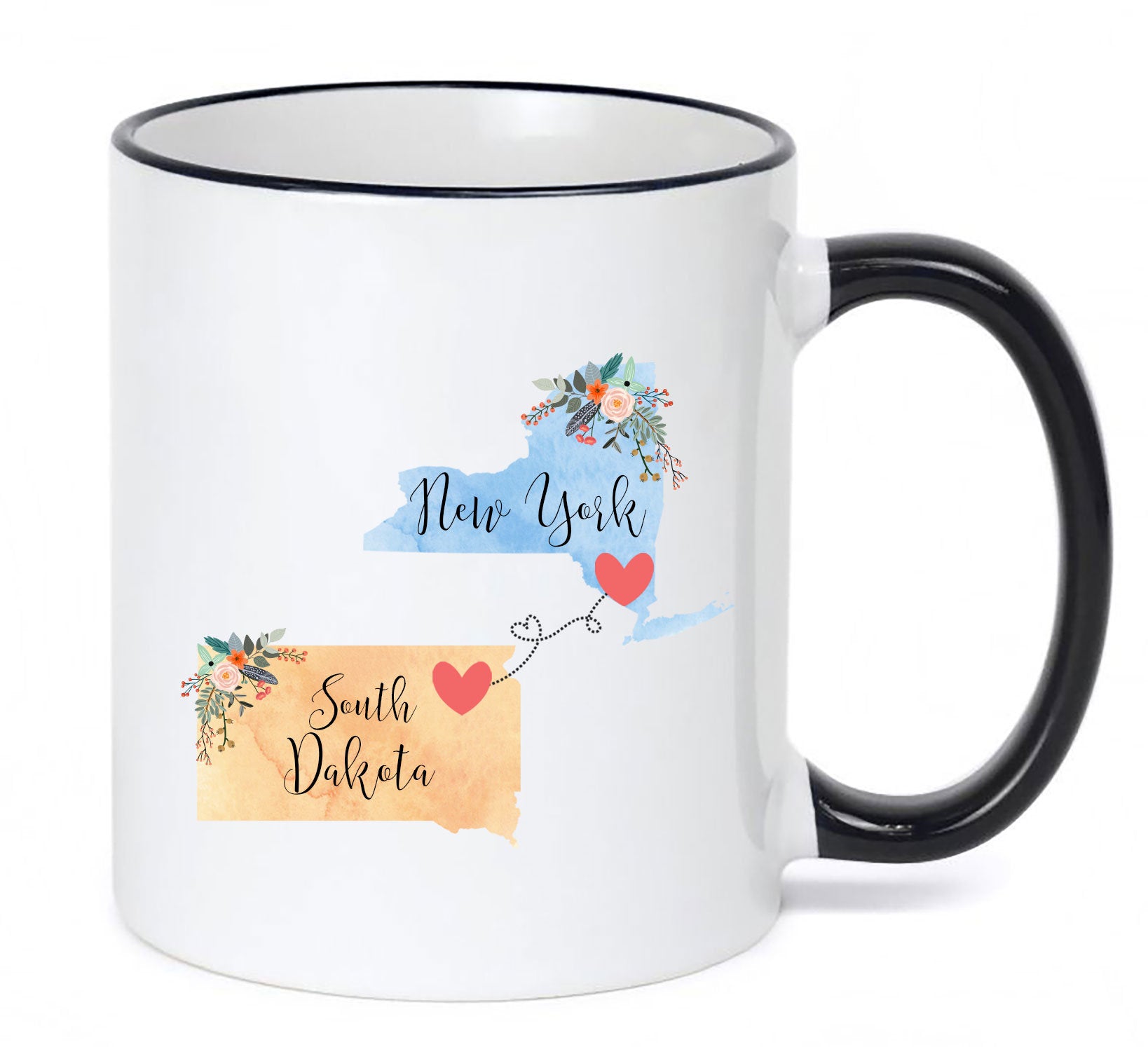 **No Delivery Dates Are Guaranteed. All shipping carriers are currently experiencing delays and transit times can be longer than normal. As a small business, we appreciate your patience and understanding that these circumstances are something that is out of our control. By purchasing this listing you are agreeing that you understand that the shipping date estimation may not be accurate.**New York South Dakota Mug / South Dakota New York Mug / New York to South Dakota Gift / South Dakota to New York Mug / 11 or 15 oz