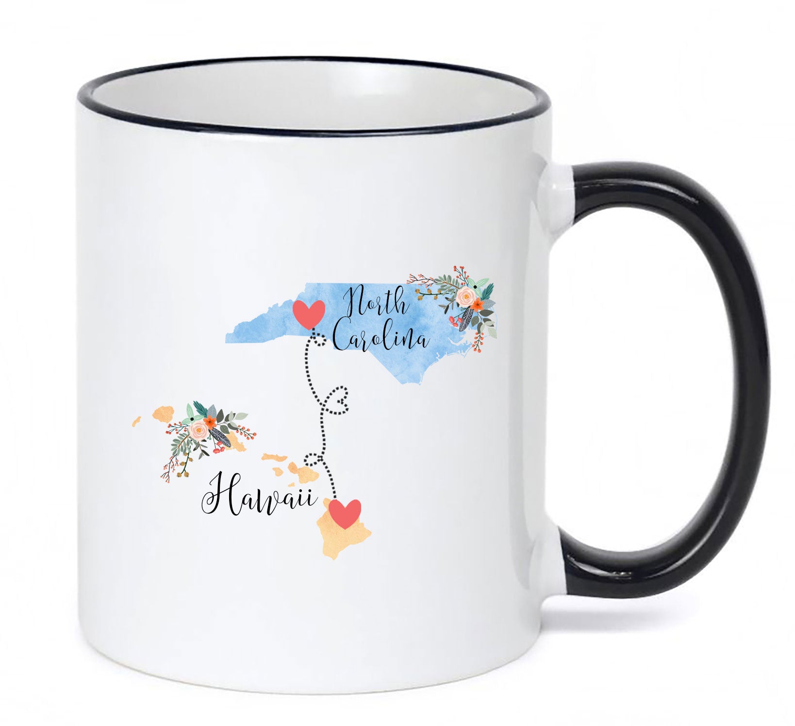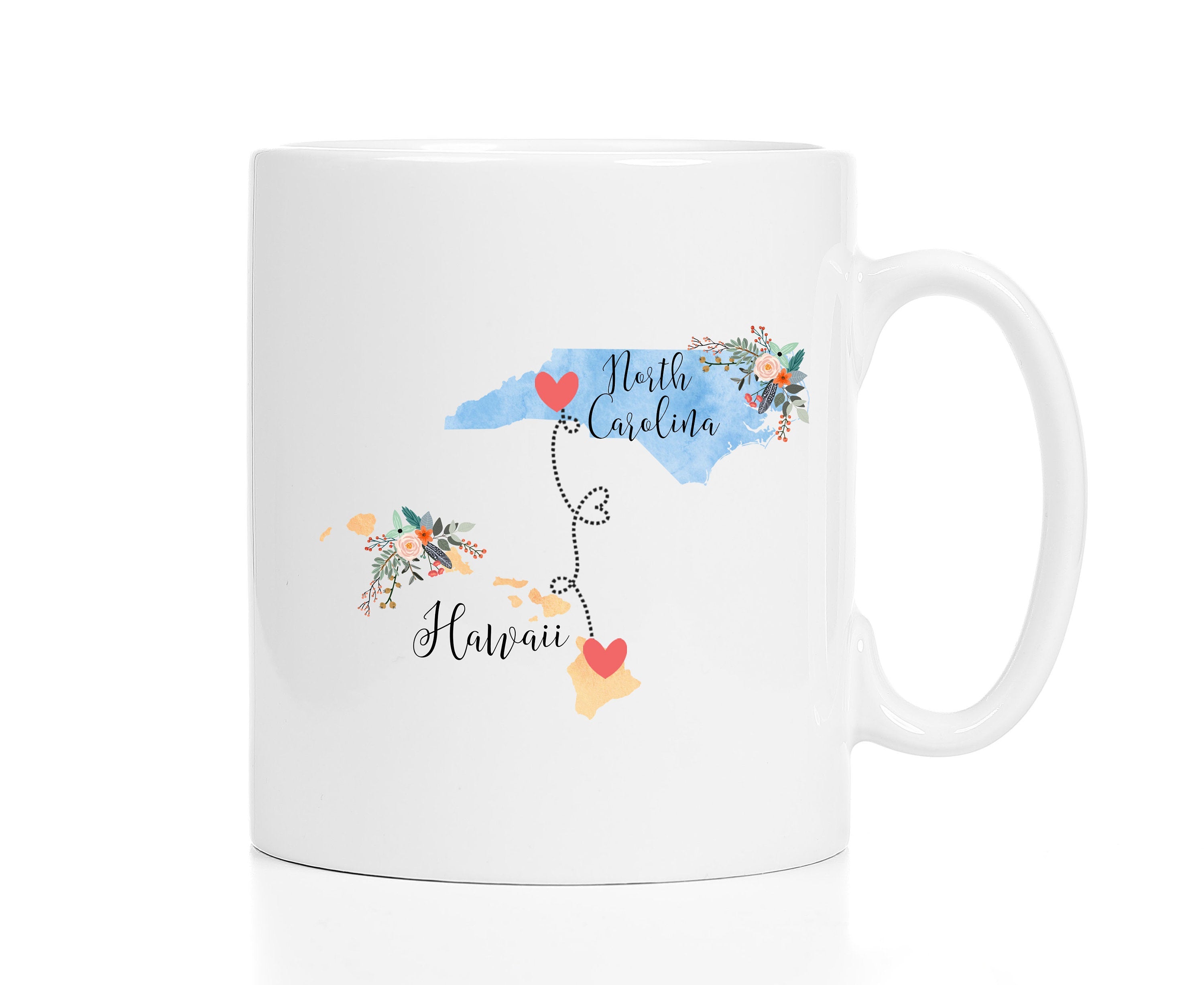 **No Delivery Dates Are Guaranteed. All shipping carriers are currently experiencing delays and transit times can be longer than normal. As a small business, we appreciate your patience and understanding that these circumstances are something that is out of our control. By purchasing this listing you are agreeing that you understand that the shipping date estimation may not be accurate.**North Carolina Hawaii Mug / Hawaii North Carolina Mug / North Carolina to Hawaii Gift / Hawaii to NC Coffee Cup 11 or 15 oz