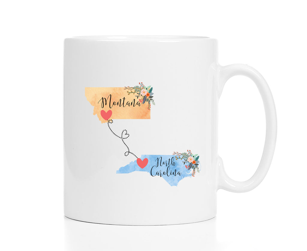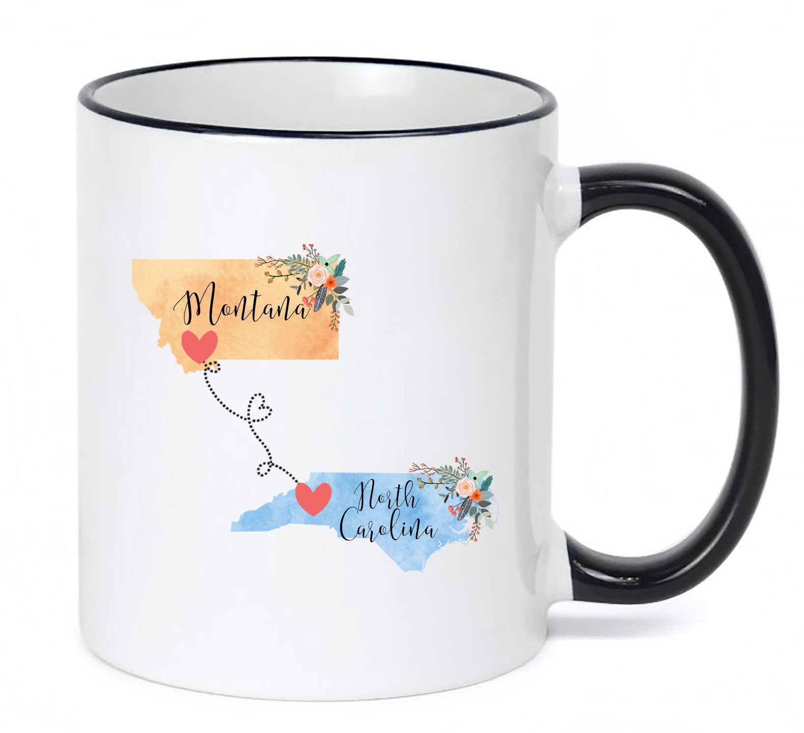 **No Delivery Dates Are Guaranteed. All shipping carriers are currently experiencing delays and transit times can be longer than normal. As a small business, we appreciate your patience and understanding that these circumstances are something that is out of our control. By purchasing this listing you are agreeing that you understand that the shipping date estimation may not be accurate.**North Carolina Montana Mug / Montana North Carolina Mug / North Carolina to Montana Gift / Montana to North Carolina Gift / 11 or 15 oz