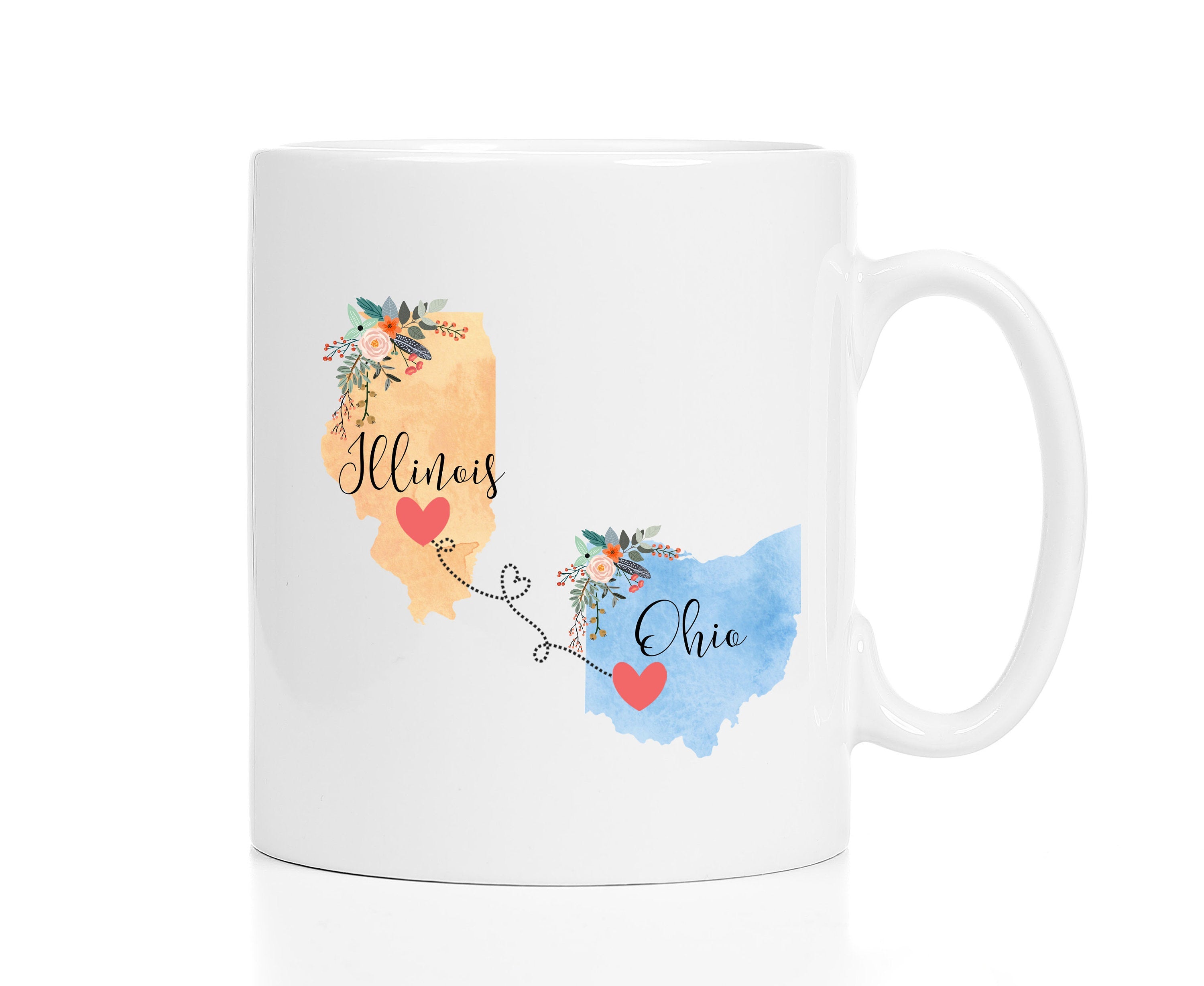 **No Delivery Dates Are Guaranteed. All shipping carriers are currently experiencing delays and transit times can be longer than normal. As a small business, we appreciate your patience and understanding that these circumstances are something that is out of our control. By purchasing this listing you are agreeing that you understand that the shipping date estimation may not be accurate.**Ohio Illinois Mug / Illinois Ohio Mug / Ohio to Illinois Gift / Illinois to Ohio Gift / 11 or 15 oz