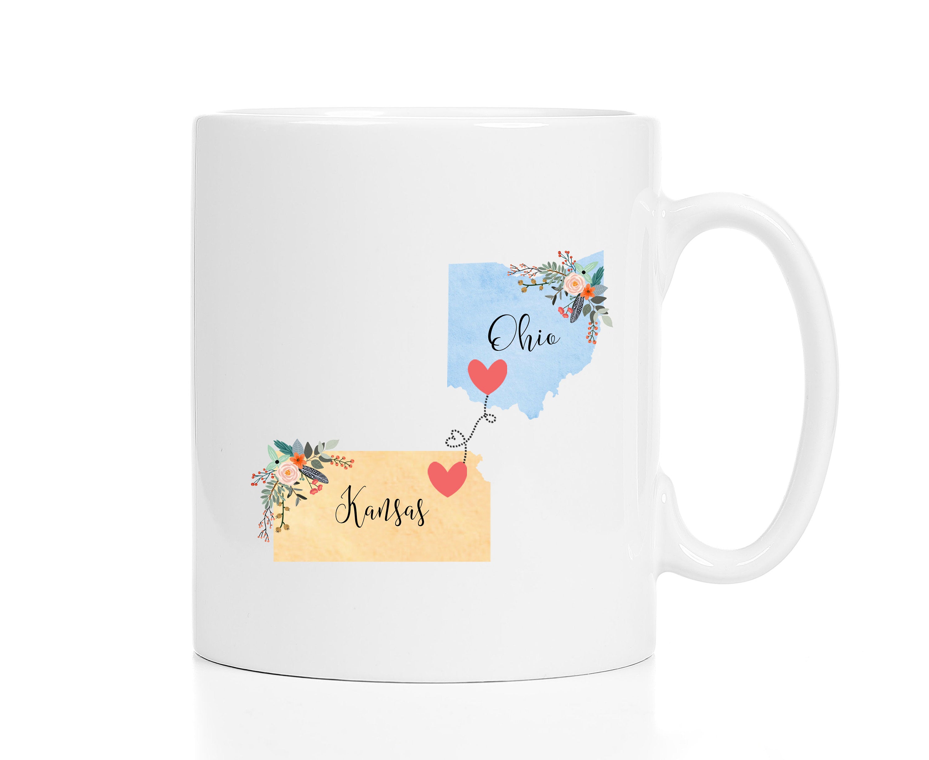 **No Delivery Dates Are Guaranteed. All shipping carriers are currently experiencing delays and transit times can be longer than normal. As a small business, we appreciate your patience and understanding that these circumstances are something that is out of our control. By purchasing this listing you are agreeing that you understand that the shipping date estimation may not be accurate.**Ohio Kansas Mug / Kansas Ohio Mug / Ohio to Kansas Gift / Kansas to Ohio Gift / Summer Vacation Mug / 11 or 15 oz