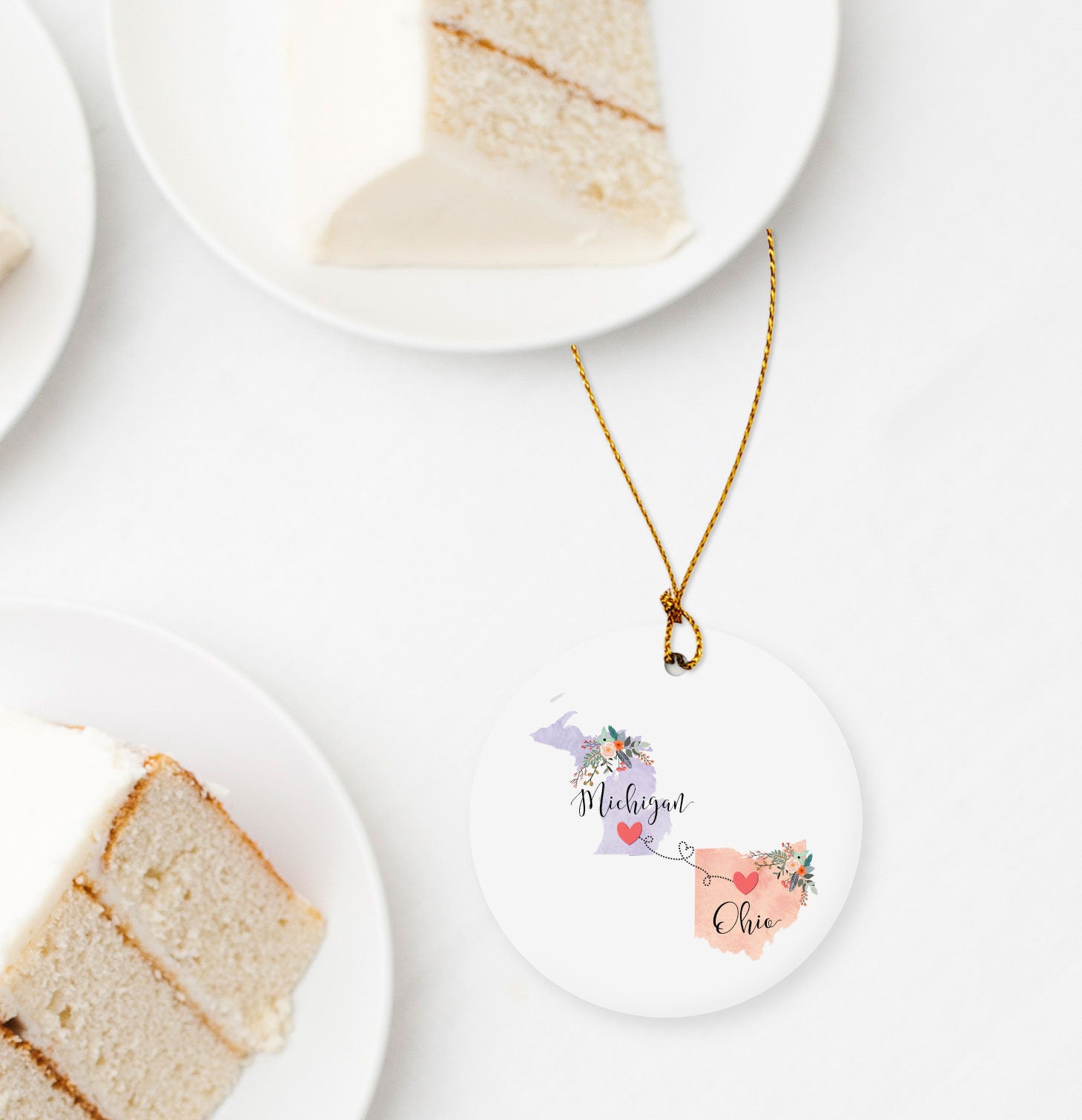Ohio Michigan Ornament / Ohio Michigan Gift / Ohio Christmas Ornament / Missing You Gift / Michigan Hostess Gift / State Love Ornaments
