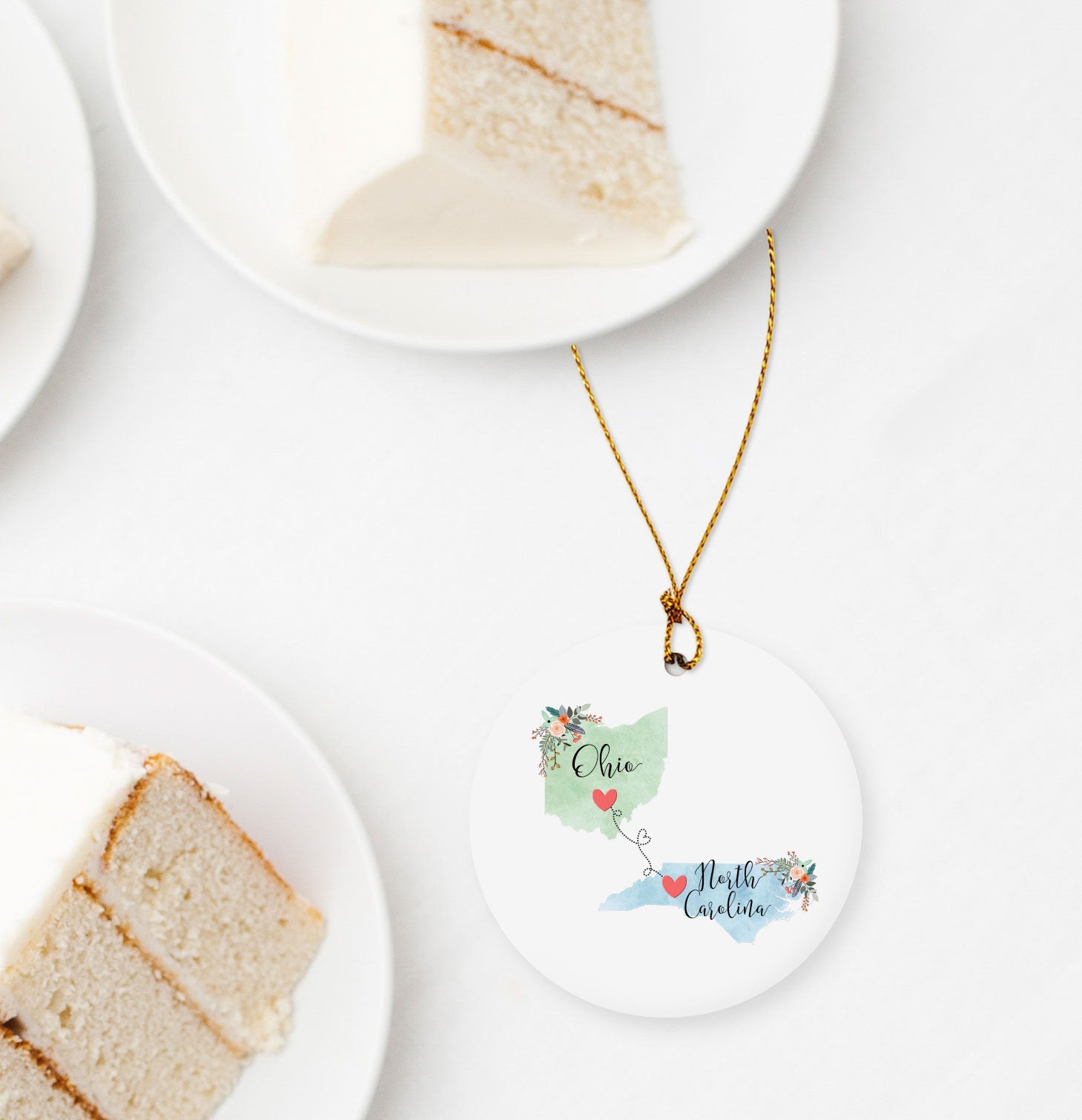 Ohio North Carolina Ornament / Ohio North Carolina Gift / Ohio Christmas Ornament / Missing You Gift / North Carolina Hostess Gift / State Love Ornaments