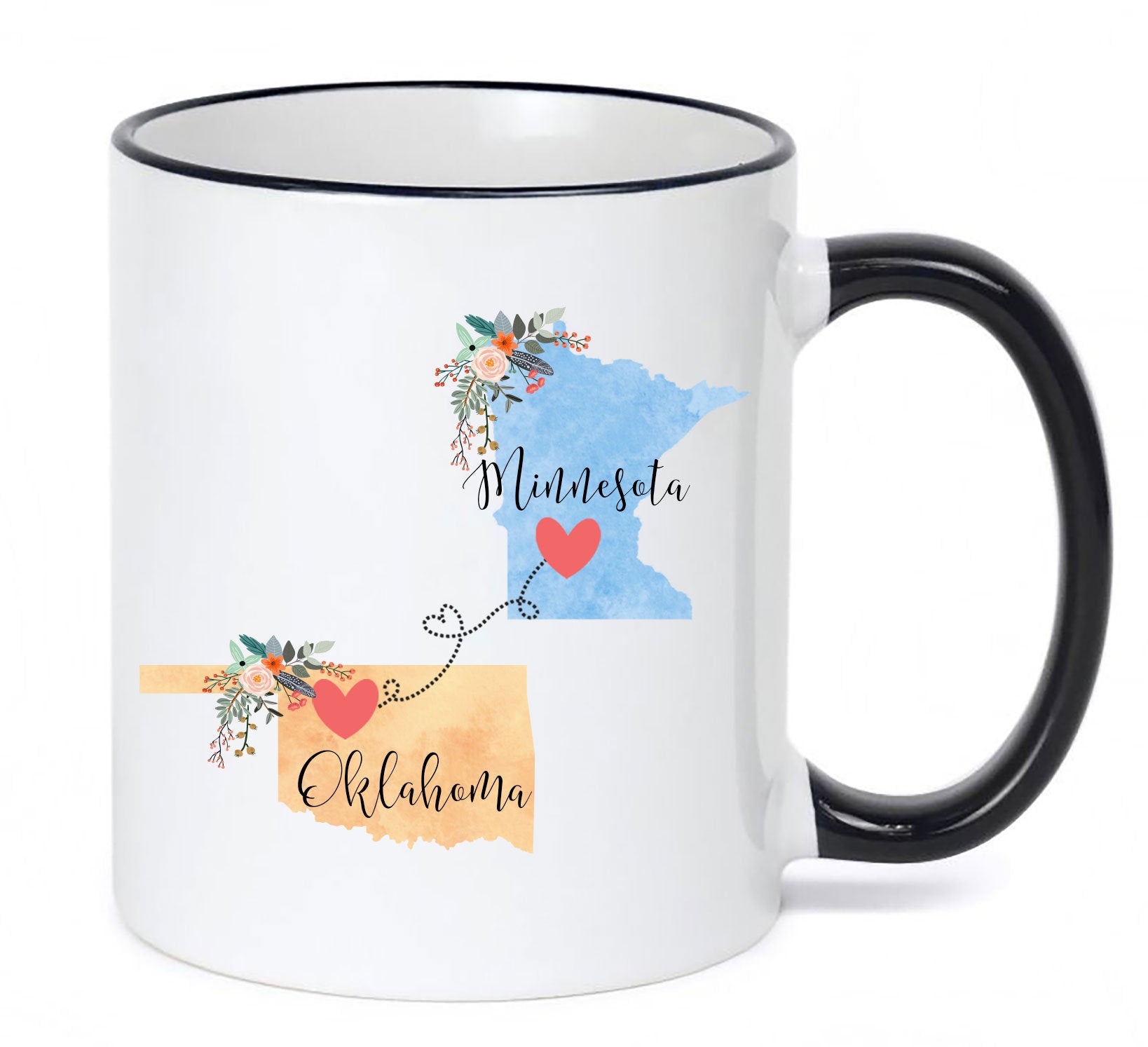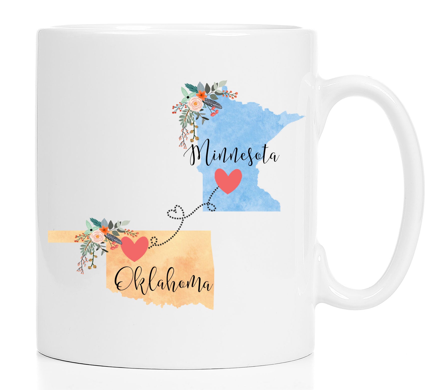 **No Delivery Dates Are Guaranteed. All shipping carriers are currently experiencing delays and transit times can be longer than normal. As a small business, we appreciate your patience and understanding that these circumstances are something that is out of our control. By purchasing this listing you are agreeing that you understand that the shipping date estimation may not be accurate.**Oklahoma Minnesota Mug / Minnesota Oklahoma Mug / College Student Going Away/College Student Gift/ Going Away Gift 11 or 15 oz