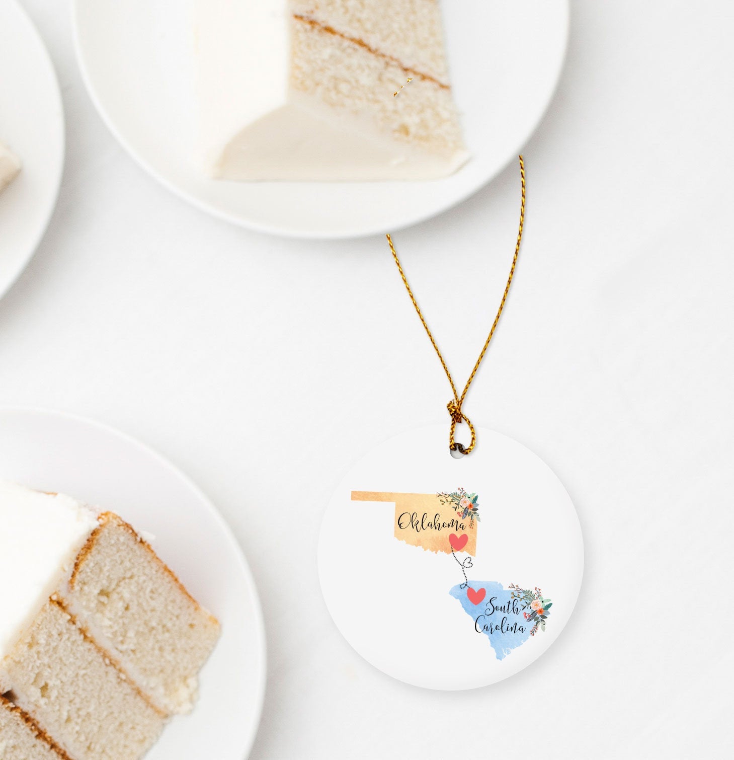 Oklahoma South Carolina Ornament / DOUBLE SIDED Ornament / Oklahoma Christmas Ornament / Missing You Gift / South Carolina Hostess Gift