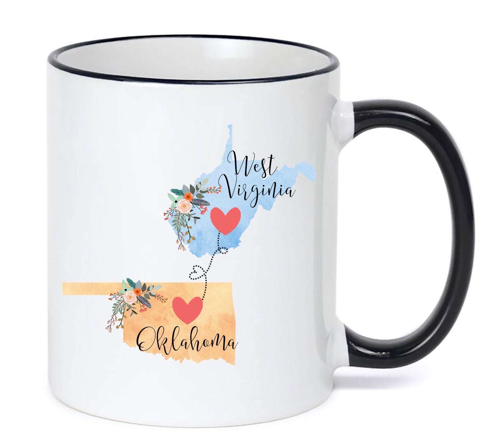 **No Delivery Dates Are Guaranteed. All shipping carriers are currently experiencing delays and transit times can be longer than normal. As a small business, we appreciate your patience and understanding that these circumstances are something that is out of our control. By purchasing this listing you are agreeing that you understand that the shipping date estimation may not be accurate.**Oklahoma West Virginia Mug / West Virginia Oklahoma Mug / Moving to Oklahoma / Going Away Gift / West Virginia Hostess Gift / 11 or 15 oz