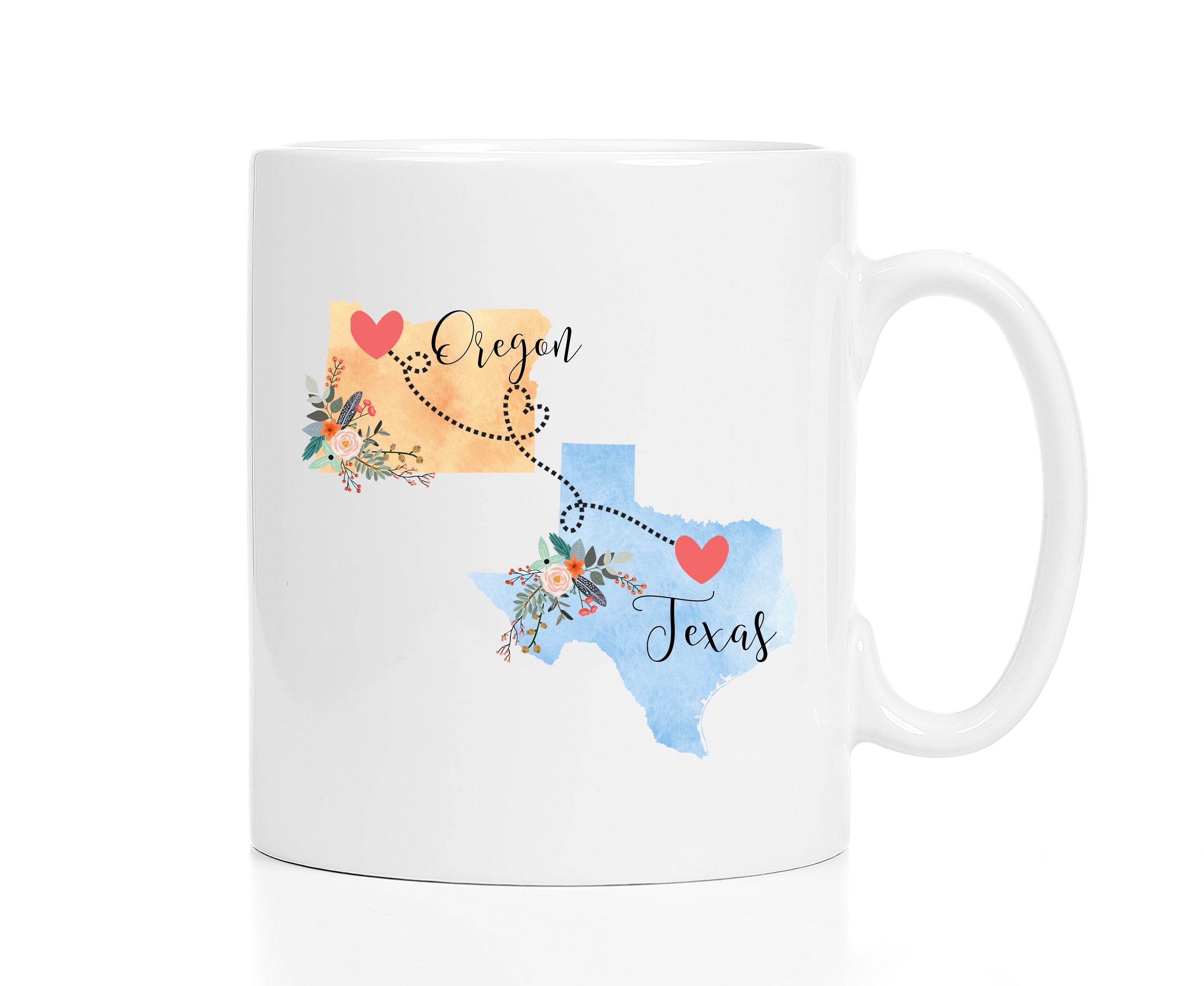 **No Delivery Dates Are Guaranteed. All shipping carriers are currently experiencing delays and transit times can be longer than normal. As a small business, we appreciate your patience and understanding that these circumstances are something that is out of our control. By purchasing this listing you are agreeing that you understand that the shipping date estimation may not be accurate.**Oregon Texas Mug / Texas Oregon Mug / Oregon to Texas Gift / Texas to Oregon Gift / 11 or 15 oz