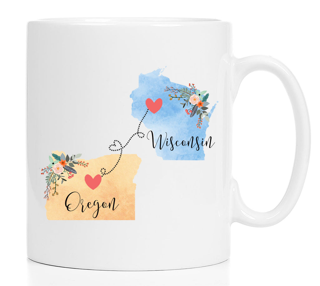 **No Delivery Dates Are Guaranteed. All shipping carriers are currently experiencing delays and transit times can be longer than normal. As a small business, we appreciate your patience and understanding that these circumstances are something that is out of our control. By purchasing this listing you are agreeing that you understand that the shipping date estimation may not be accurate.**Oregon Wisconsin Mug / Wisconsin Oregon Mug / Oregon to Wisconsin Gift / State Bridesmaid Gifts / Connected States Coffee Mug / Vacation Mug