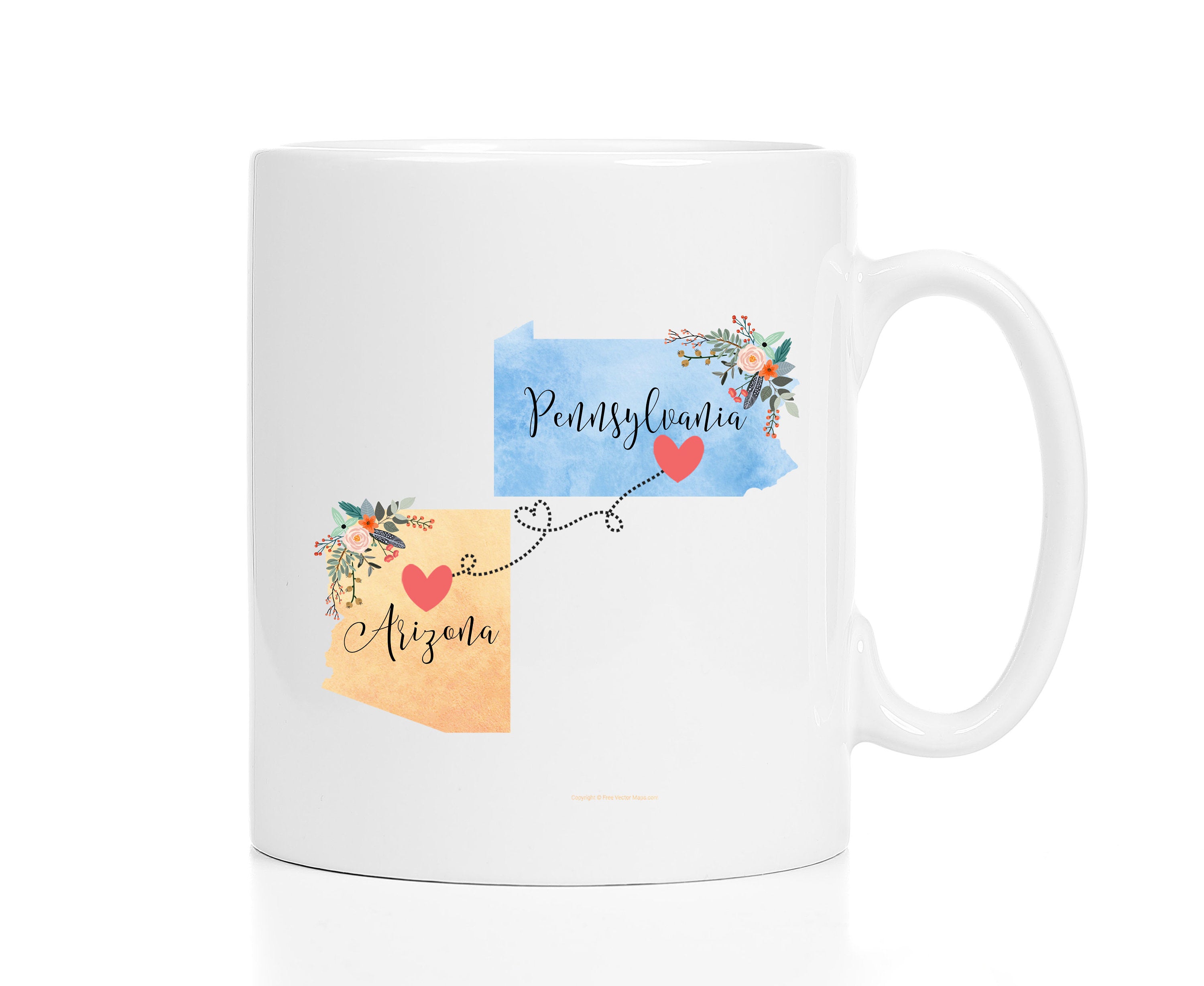 **No Delivery Dates Are Guaranteed. All shipping carriers are currently experiencing delays and transit times can be longer than normal. As a small business, we appreciate your patience and understanding that these circumstances are something that is out of our control. By purchasing this listing you are agreeing that you understand that the shipping date estimation may not be accurate.**Pennsylvania Arizona Mug / Arizona Pennsylvania Mug / Pennsylvania to Arizona Gift / Arizona to Pennsylvania Cup 11 or 15 oz