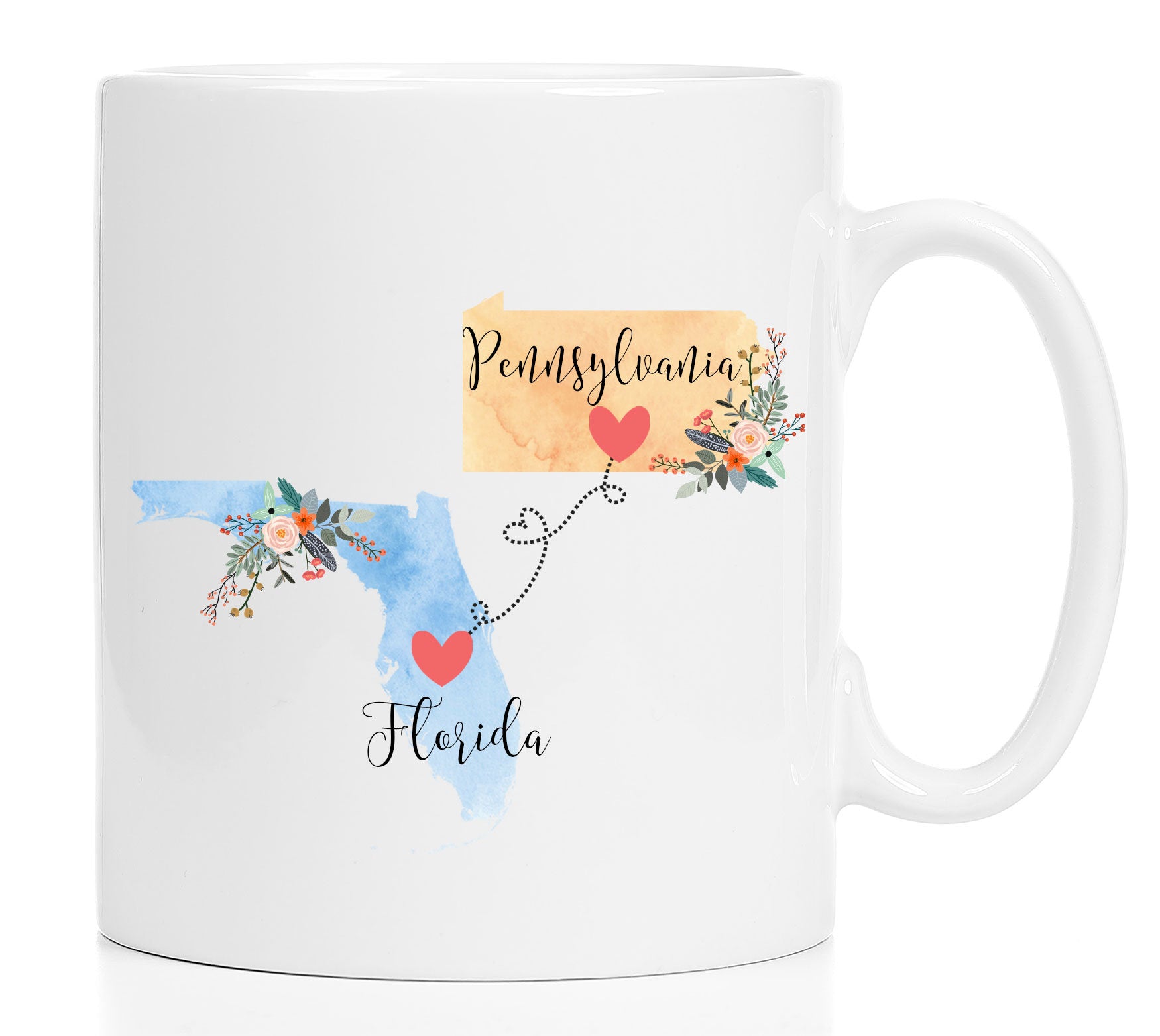 **No Delivery Dates Are Guaranteed. All shipping carriers are currently experiencing delays and transit times can be longer than normal. As a small business, we appreciate your patience and understanding that these circumstances are something that is out of our control. By purchasing this listing you are agreeing that you understand that the shipping date estimation may not be accurate.**Pennsylvania Florida Mug / Florida Pennsylvania Mug / Pennsylvania to Florida Gift / Florida to Pennsylvania Cup / 11 or 15 oz