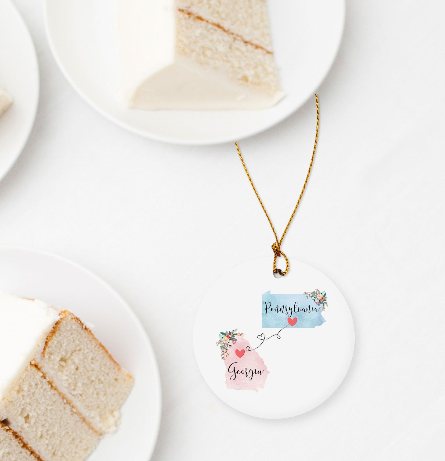Pennsylvania Georgia Ornament / DOUBLE SIDED Ornament / Pennsylvania Christmas Ornament / Missing You Gift / Georgia Hostess Gift