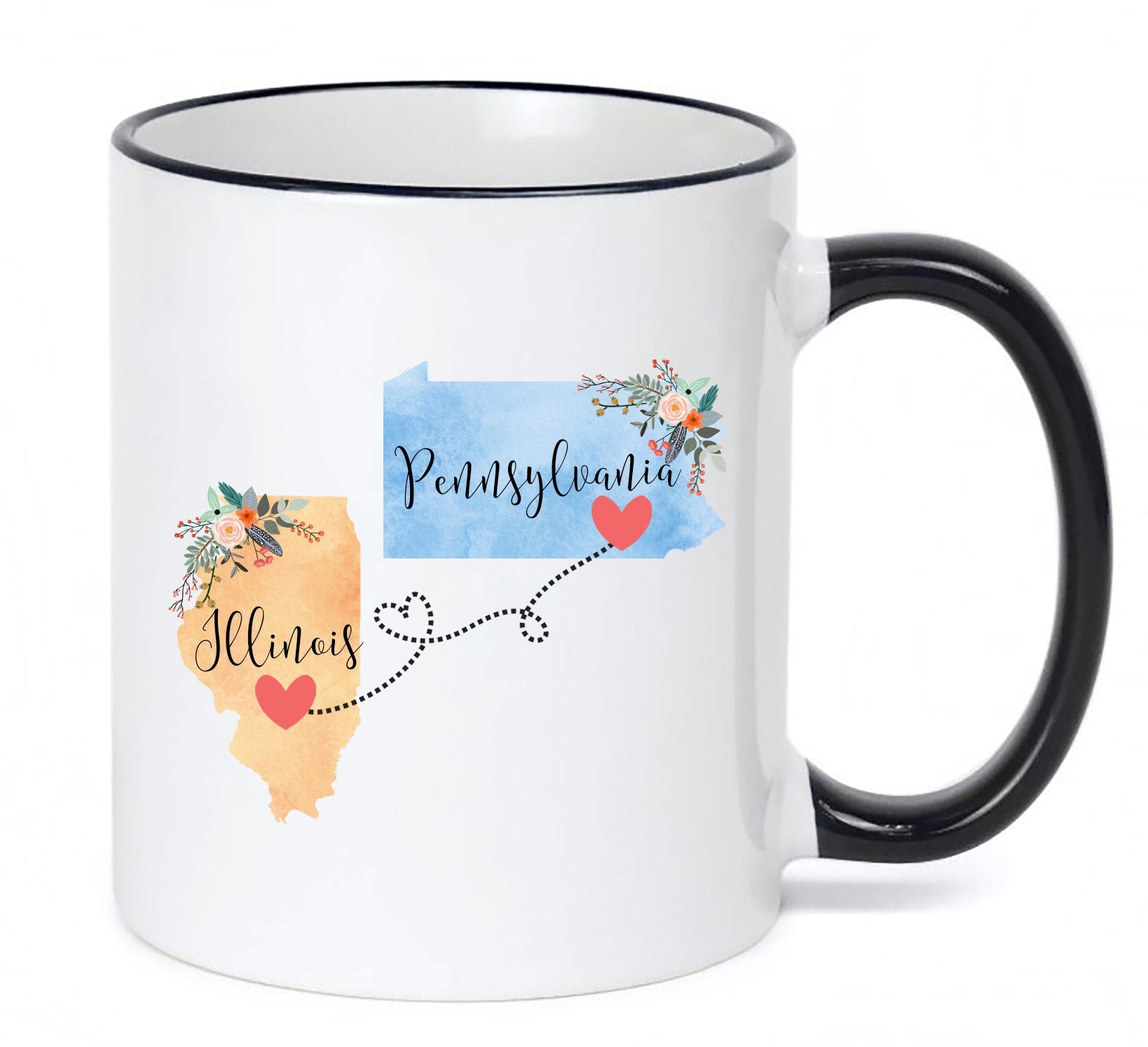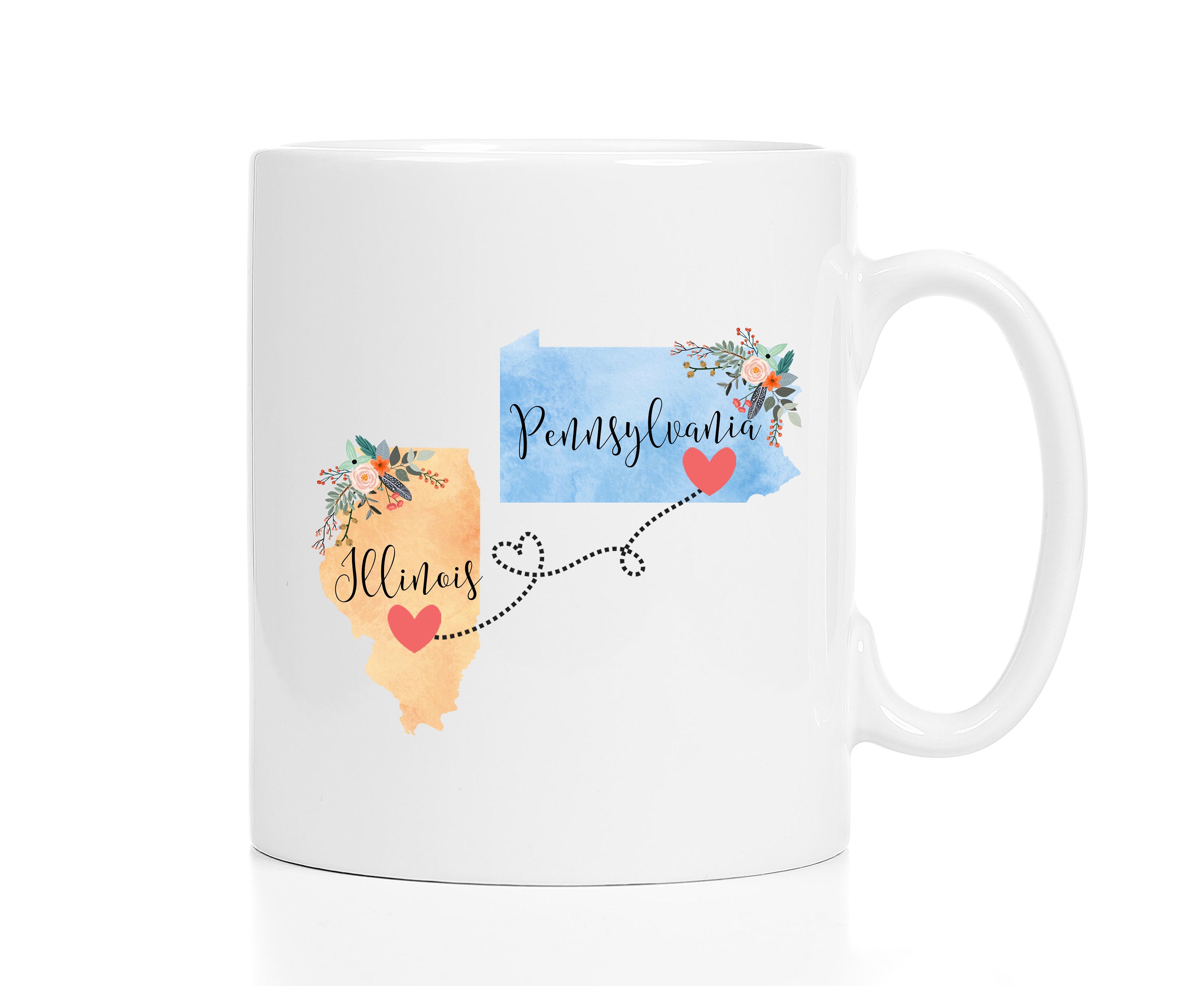 **No Delivery Dates Are Guaranteed. All shipping carriers are currently experiencing delays and transit times can be longer than normal. As a small business, we appreciate your patience and understanding that these circumstances are something that is out of our control. By purchasing this listing you are agreeing that you understand that the shipping date estimation may not be accurate.**Pennsylvania Illinois Mug / Illinois Pennsylvania Gift / Pennsylvania to Illinois Coffee Mug / Illinois to Pennsylvania Cup 11 or 15 oz