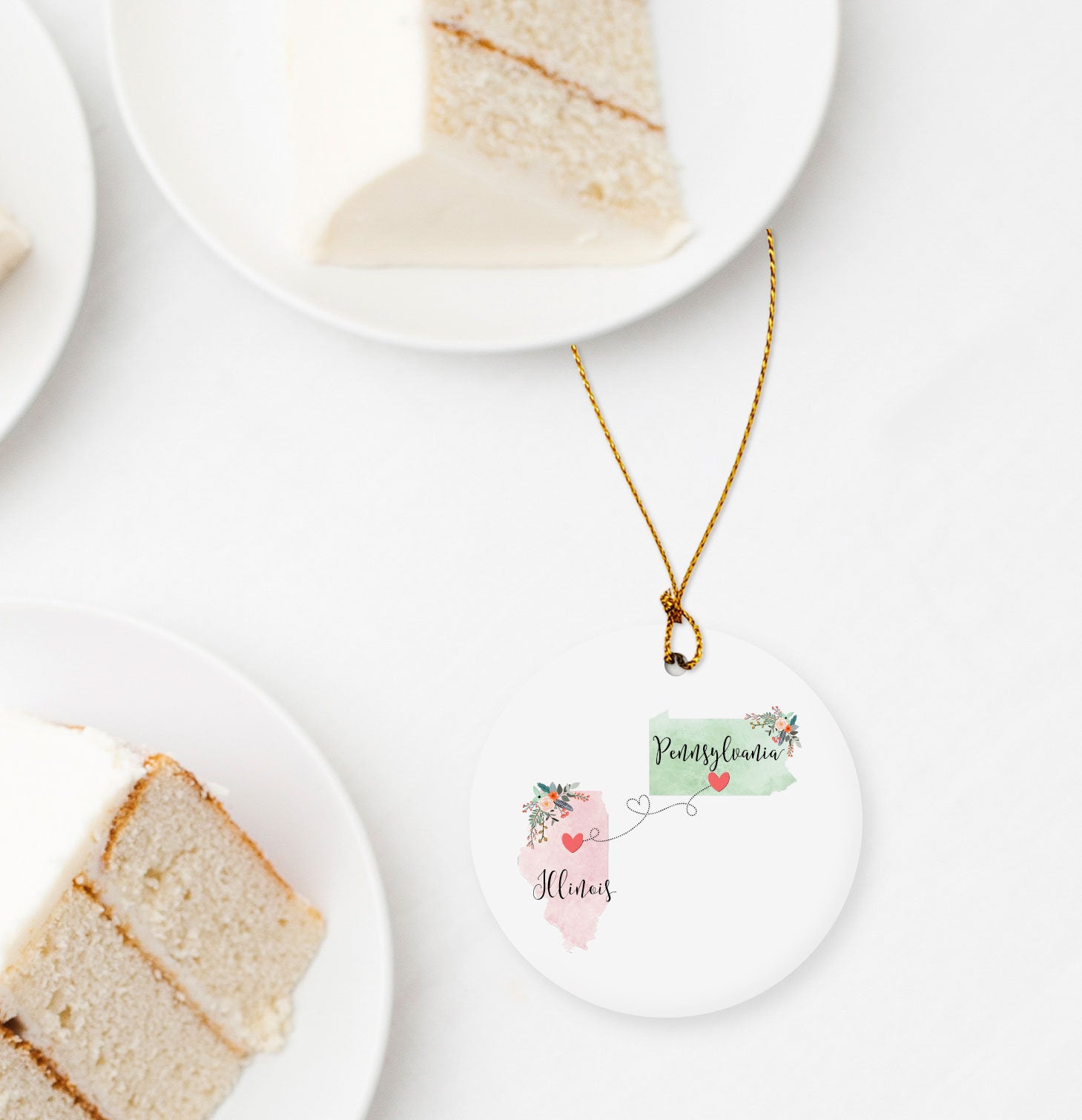 Pennsylvania Illinois Ornament / DOUBLE SIDED Ornament / Pennsylvania Christmas Ornament / Missing You Gift / Illinois Hostess Gift