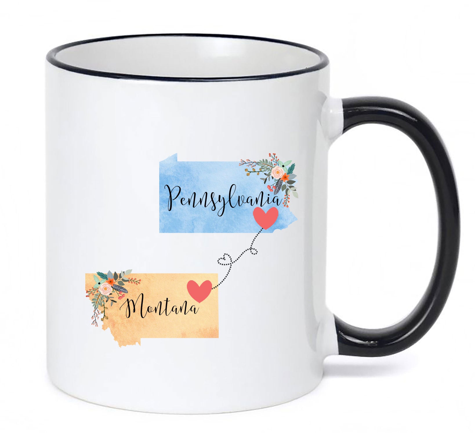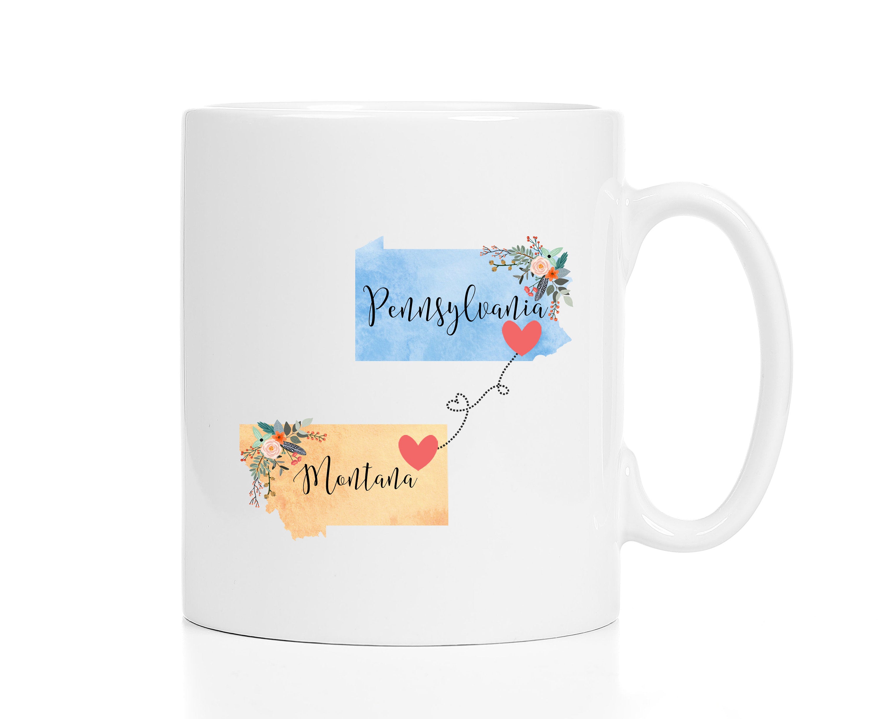 **No Delivery Dates Are Guaranteed. All shipping carriers are currently experiencing delays and transit times can be longer than normal. As a small business, we appreciate your patience and understanding that these circumstances are something that is out of our control. By purchasing this listing you are agreeing that you understand that the shipping date estimation may not be accurate.**Pennsylvania Montana Mug / Montana Pennsylvania Mug / Pennsylvania to Montana Gift / Montana to Pennsylvania Cup 11 or 15 oz