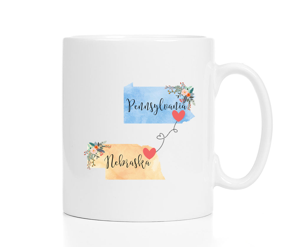 **No Delivery Dates Are Guaranteed. All shipping carriers are currently experiencing delays and transit times can be longer than normal. As a small business, we appreciate your patience and understanding that these circumstances are something that is out of our control. By purchasing this listing you are agreeing that you understand that the shipping date estimation may not be accurate.**Pennsylvania Nebraska Mug / Nebraska Pennsylvania Mug / Pennsylvania to Nebraska Gift / Nebraska to Pennsylvania Cup 11 or 15 oz