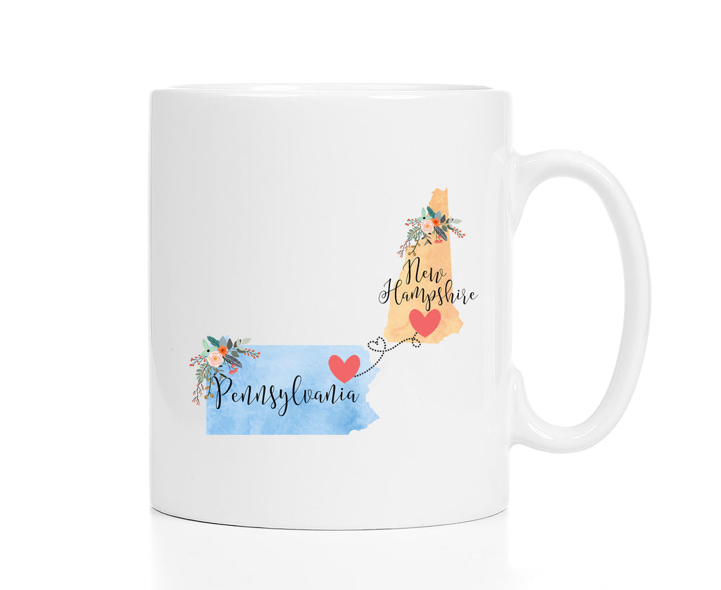 **No Delivery Dates Are Guaranteed. All shipping carriers are currently experiencing delays and transit times can be longer than normal. As a small business, we appreciate your patience and understanding that these circumstances are something that is out of our control. By purchasing this listing you are agreeing that you understand that the shipping date estimation may not be accurate.**Pennsylvania New Hampshire Mug / New Hampshire Pennsylvania Mug / Pennsylvania to New Hampshire Gift / 11 or 15 oz