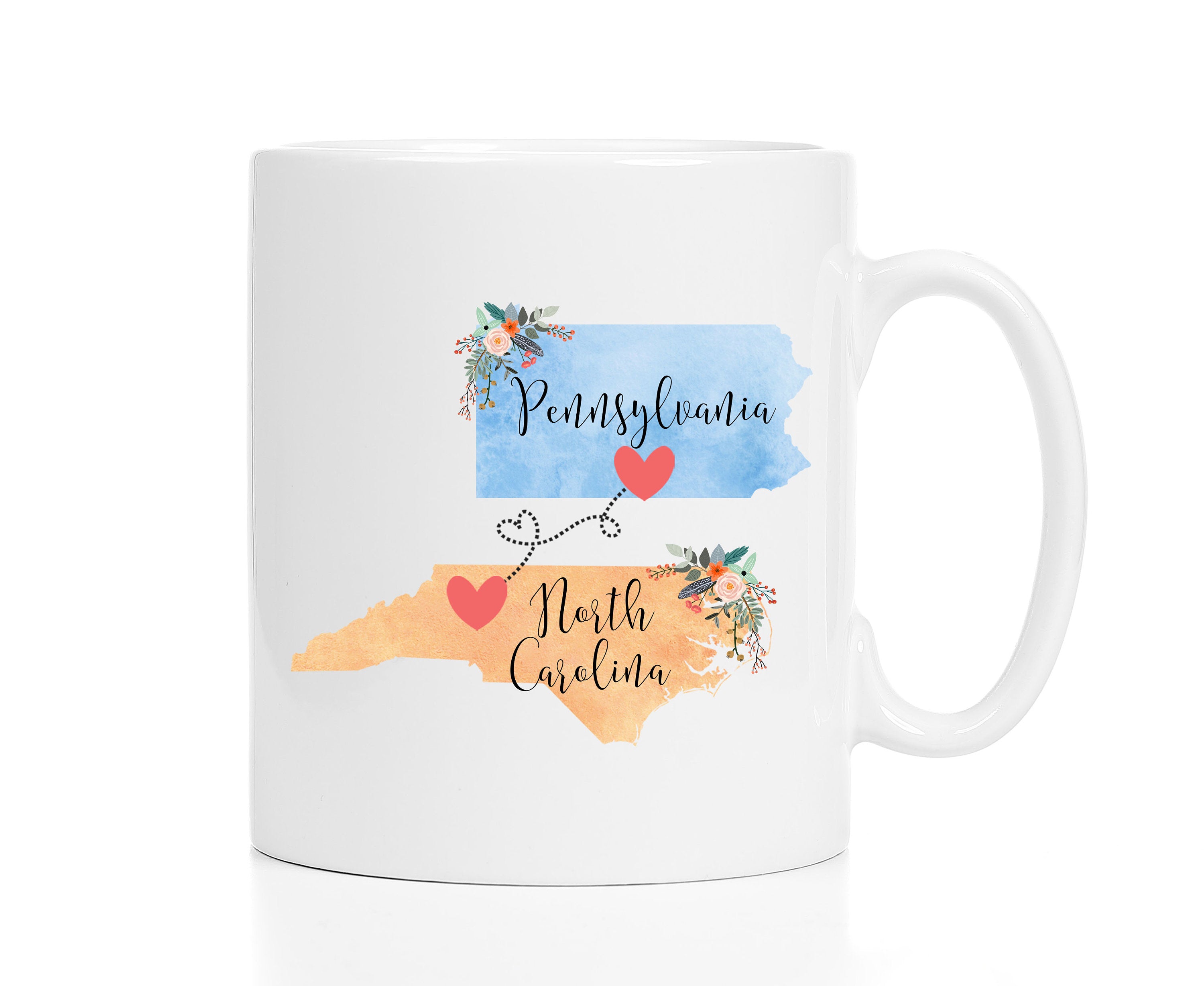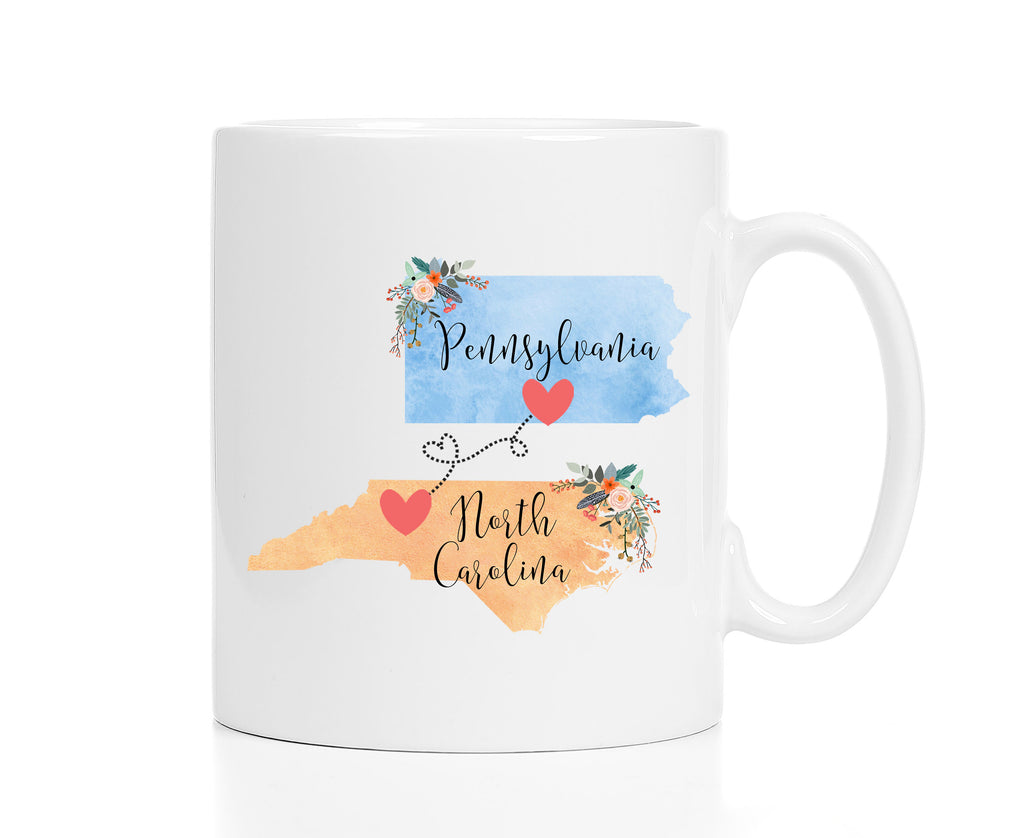**No Delivery Dates Are Guaranteed. All shipping carriers are currently experiencing delays and transit times can be longer than normal. As a small business, we appreciate your patience and understanding that these circumstances are something that is out of our control. By purchasing this listing you are agreeing that you understand that the shipping date estimation may not be accurate.**Pennsylvania North Carolina Mug / North Carolina Pennsylvania Gift / Pennsylvania to North Carolina Coffee Mug 11 or 15 oz