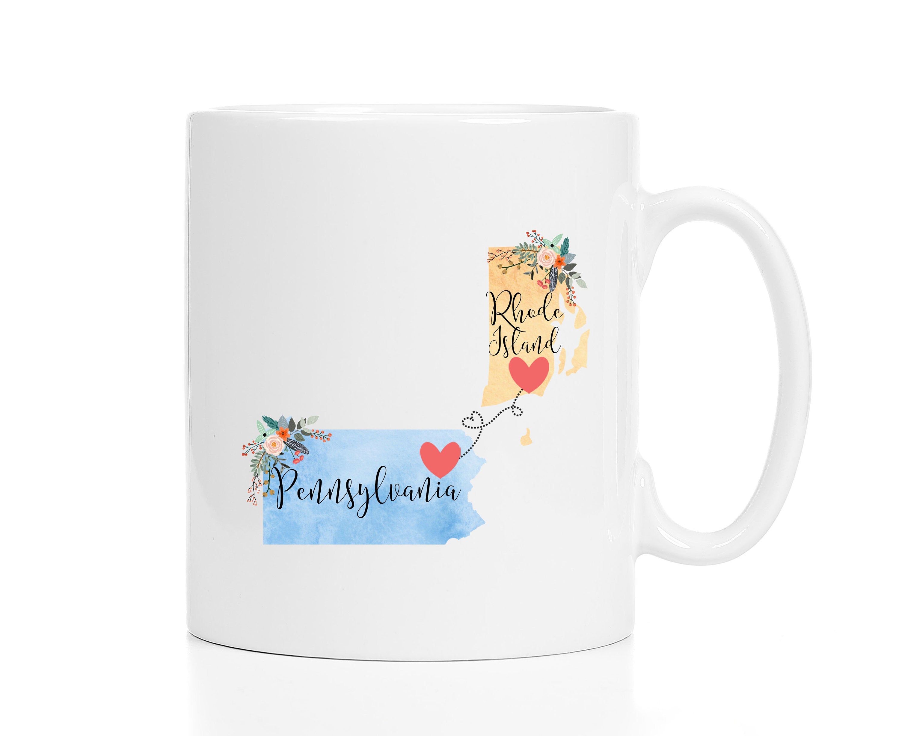**No Delivery Dates Are Guaranteed. All shipping carriers are currently experiencing delays and transit times can be longer than normal. As a small business, we appreciate your patience and understanding that these circumstances are something that is out of our control. By purchasing this listing you are agreeing that you understand that the shipping date estimation may not be accurate.**Pennsylvania Rhode Island Mug / Rhode Island Pennsylvania Mug / Pennsylvania to Rhode Island Gift / Rhode Island to PA Cup 11 or 15 oz