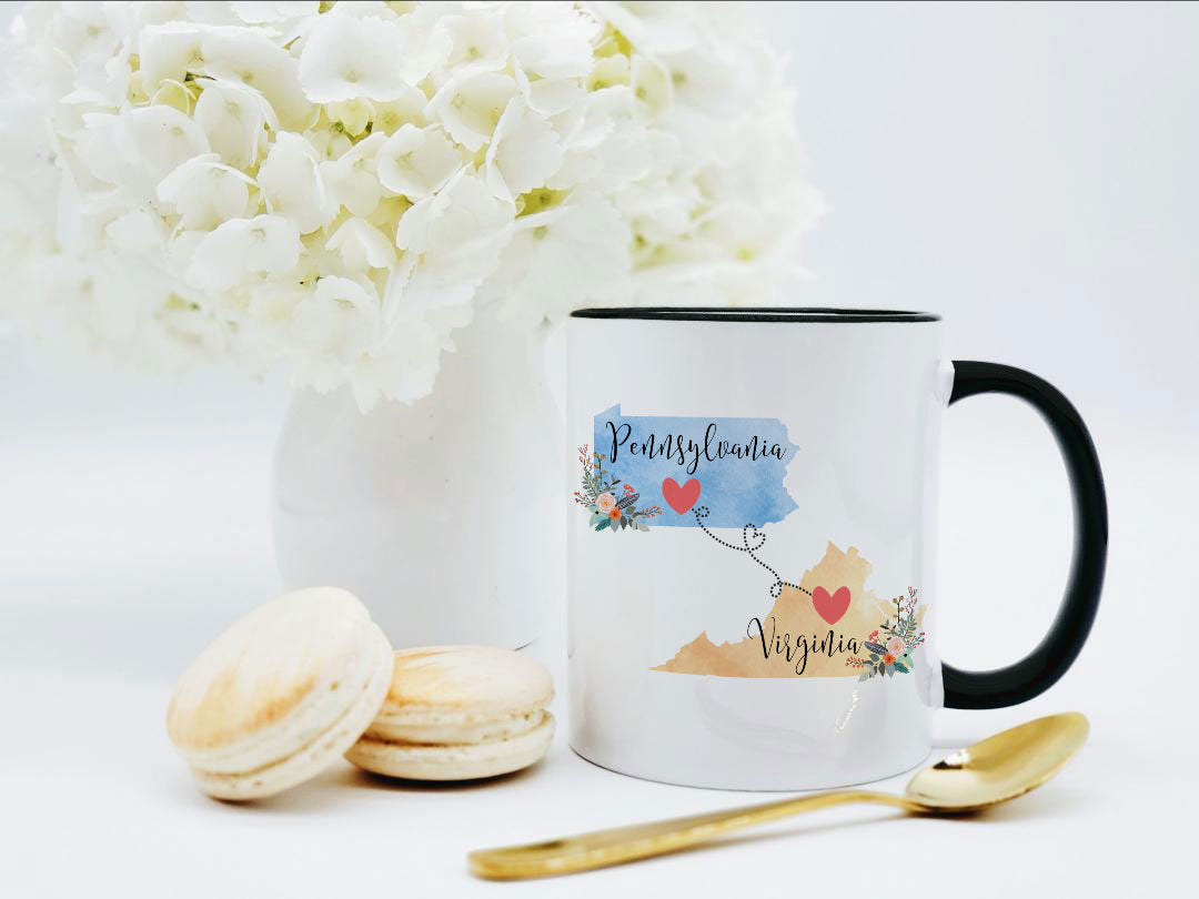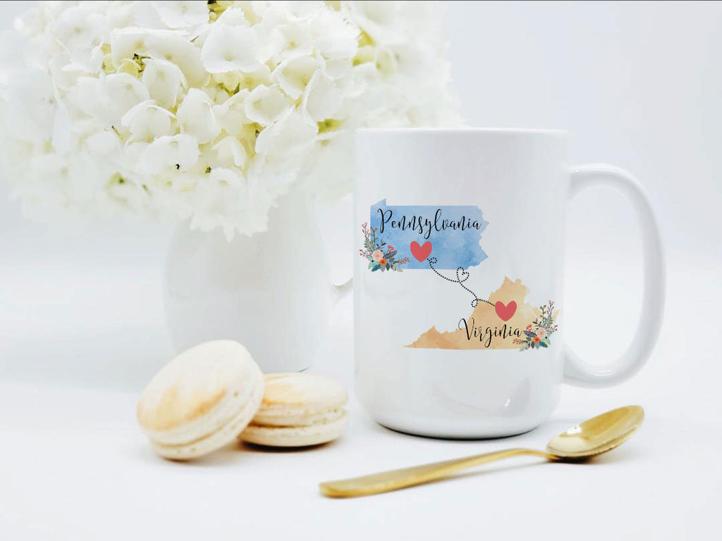 **No Delivery Dates Are Guaranteed. All shipping carriers are currently experiencing delays and transit times can be longer than normal. As a small business, we appreciate your patience and understanding that these circumstances are something that is out of our control. By purchasing this listing you are agreeing that you understand that the shipping date estimation may not be accurate.**Pennsylvania Virginia Mug / Virginia Pennsylvania Mug / Pennsylvania to Virginia Gift / Virginia to Pennsylvania Cup 11 or 15 oz