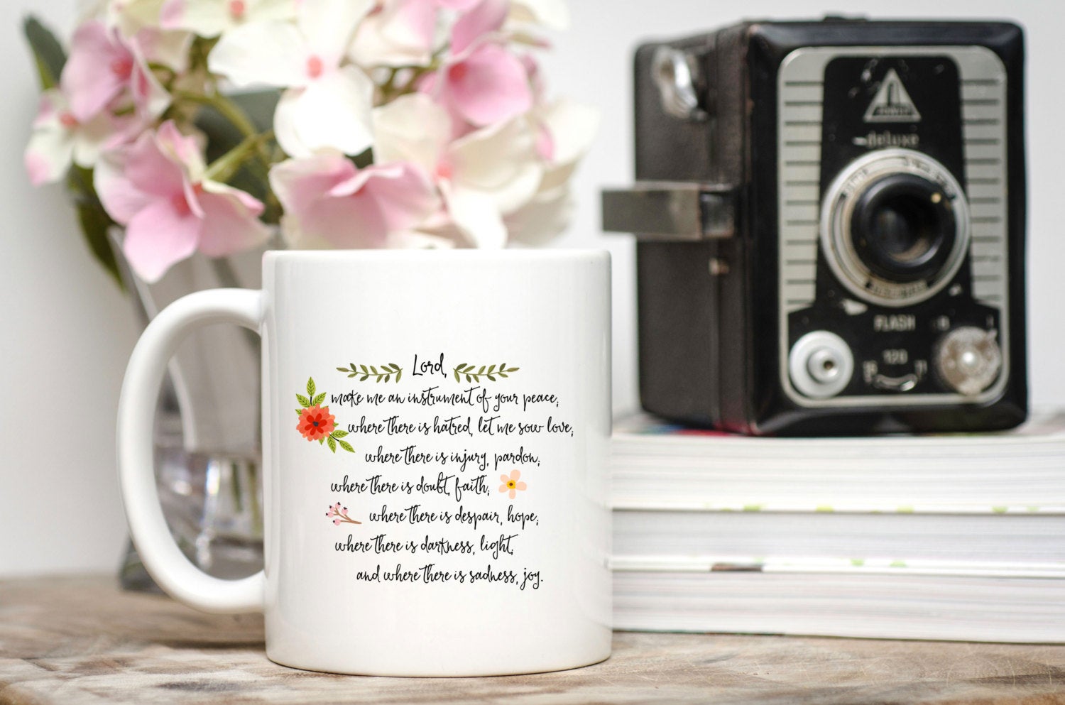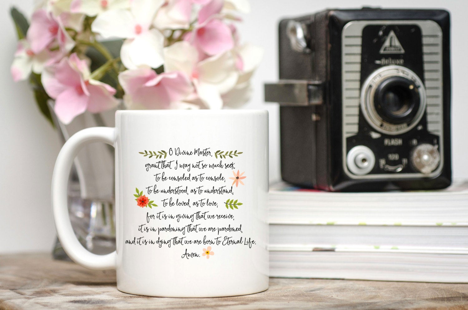 **No Delivery Dates Are Guaranteed. All shipping carriers are currently experiencing delays and transit times can be longer than normal. As a small business, we appreciate your patience and understanding that these circumstances are something that is out of our control. By purchasing this listing you are agreeing that you understand that the shipping date estimation may not be accurate.**Prayer of St. Francis Mug / Catholic Mug / Christian Mug / Saint Francis Prayer / 11 or 15 oz.