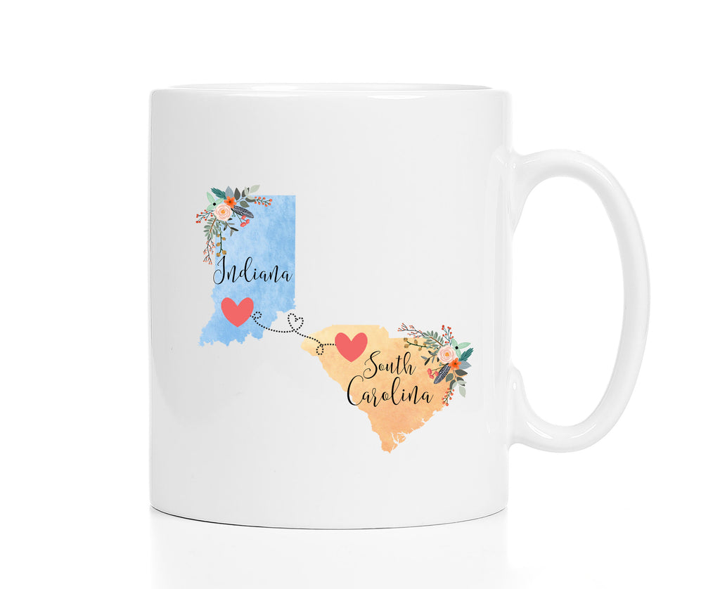 **No Delivery Dates Are Guaranteed. All shipping carriers are currently experiencing delays and transit times can be longer than normal. As a small business, we appreciate your patience and understanding that these circumstances are something that is out of our control. By purchasing this listing you are agreeing that you understand that the shipping date estimation may not be accurate.**South Carolina Indiana Mug / Indiana South Carolina Mug / South Carolina to Indiana Gift / Indiana to South Carolina Gift / 11 or 15 oz