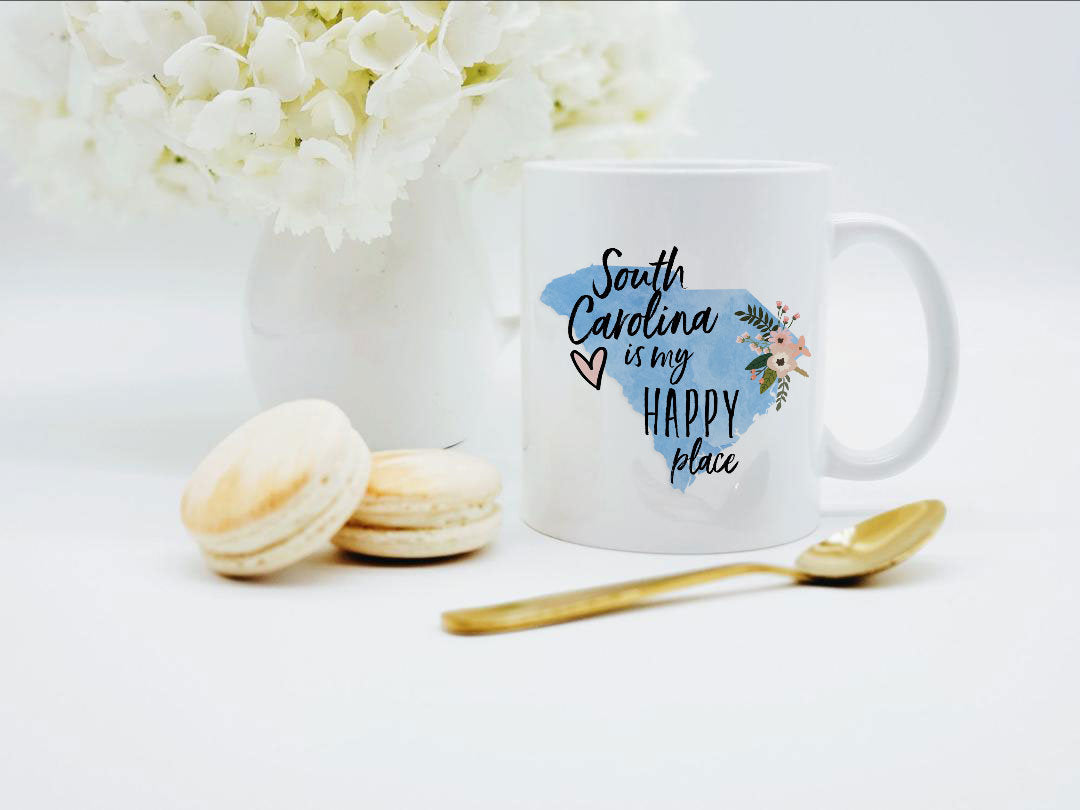 South Carolina Is My Happy Place Mug / South Carolina Coffee Mug / South Carolina Souvenir / South Carolina Gifts / Coffee Cup / 11 or 15 oz