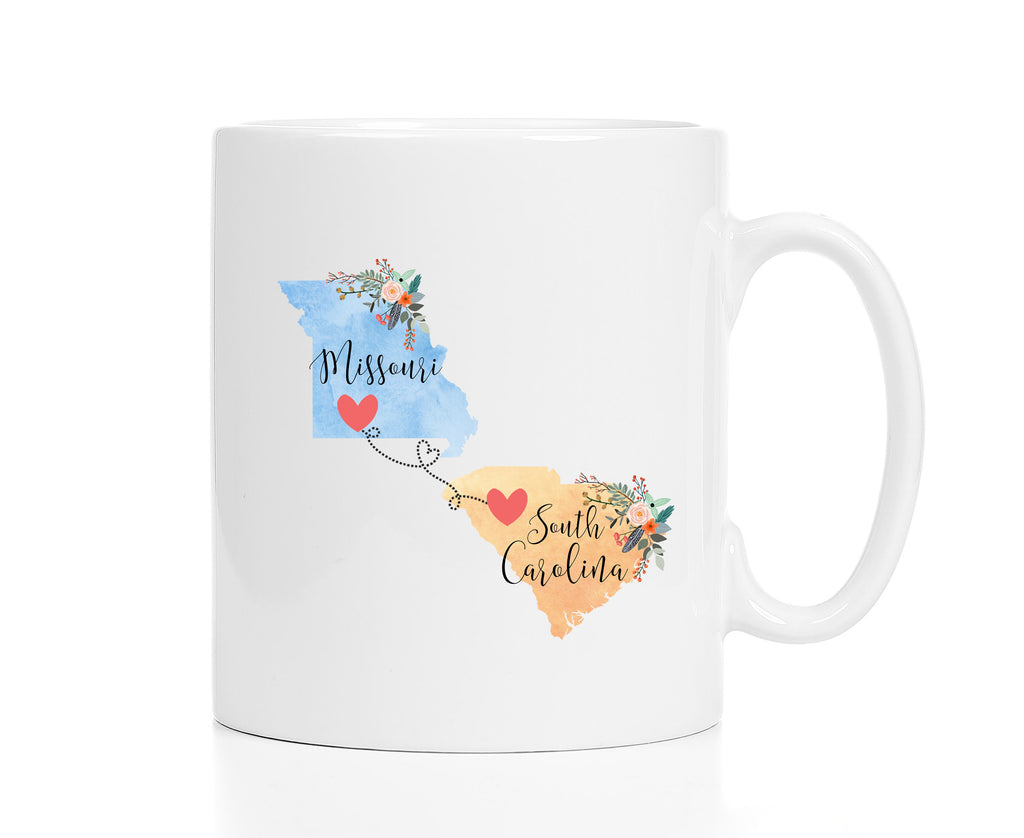 **No Delivery Dates Are Guaranteed. All shipping carriers are currently experiencing delays and transit times can be longer than normal. As a small business, we appreciate your patience and understanding that these circumstances are something that is out of our control. By purchasing this listing you are agreeing that you understand that the shipping date estimation may not be accurate.**South Carolina Missouri Mug / Missouri South Carolina Mug / South Carolina to Missouri Gift / Missouri to South Carolina Gift / 11 or 15 oz