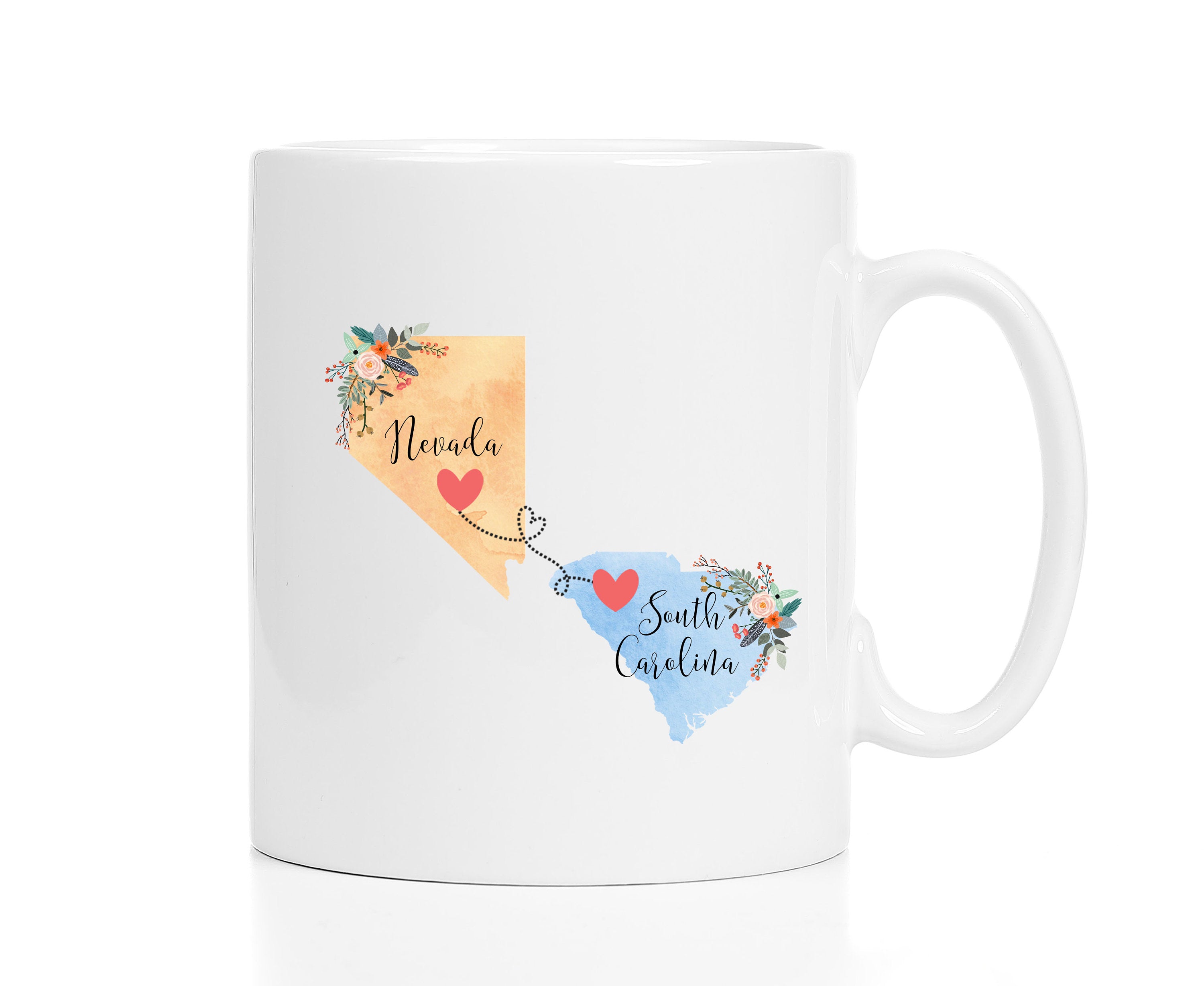 **No Delivery Dates Are Guaranteed. All shipping carriers are currently experiencing delays and transit times can be longer than normal. As a small business, we appreciate your patience and understanding that these circumstances are something that is out of our control. By purchasing this listing you are agreeing that you understand that the shipping date estimation may not be accurate.**South Carolina Nevada Mug / Nevada South Carolina Gift / South Carolina to Nevada Coffee Mug / Nevada to SC Cup 11 or 15 oz