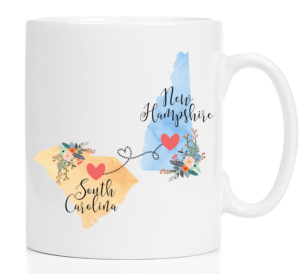 **No Delivery Dates Are Guaranteed. All shipping carriers are currently experiencing delays and transit times can be longer than normal. As a small business, we appreciate your patience and understanding that these circumstances are something that is out of our control. By purchasing this listing you are agreeing that you understand that the shipping date estimation may not be accurate.**South Carolina New Hampshire Mug / South Carolina to New Hampshire Gift / South Carolina New Hampshire Coffee Mug / Coffee Cup
