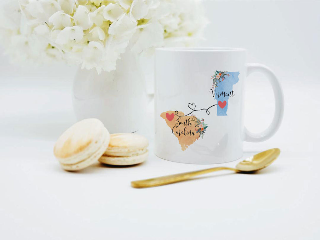 South Carolina Vermont Mug / Vermont South Carolina Mug / South Carolina to Vermont Gift / Vermont to South Carolina Gift / 11 or 15 oz