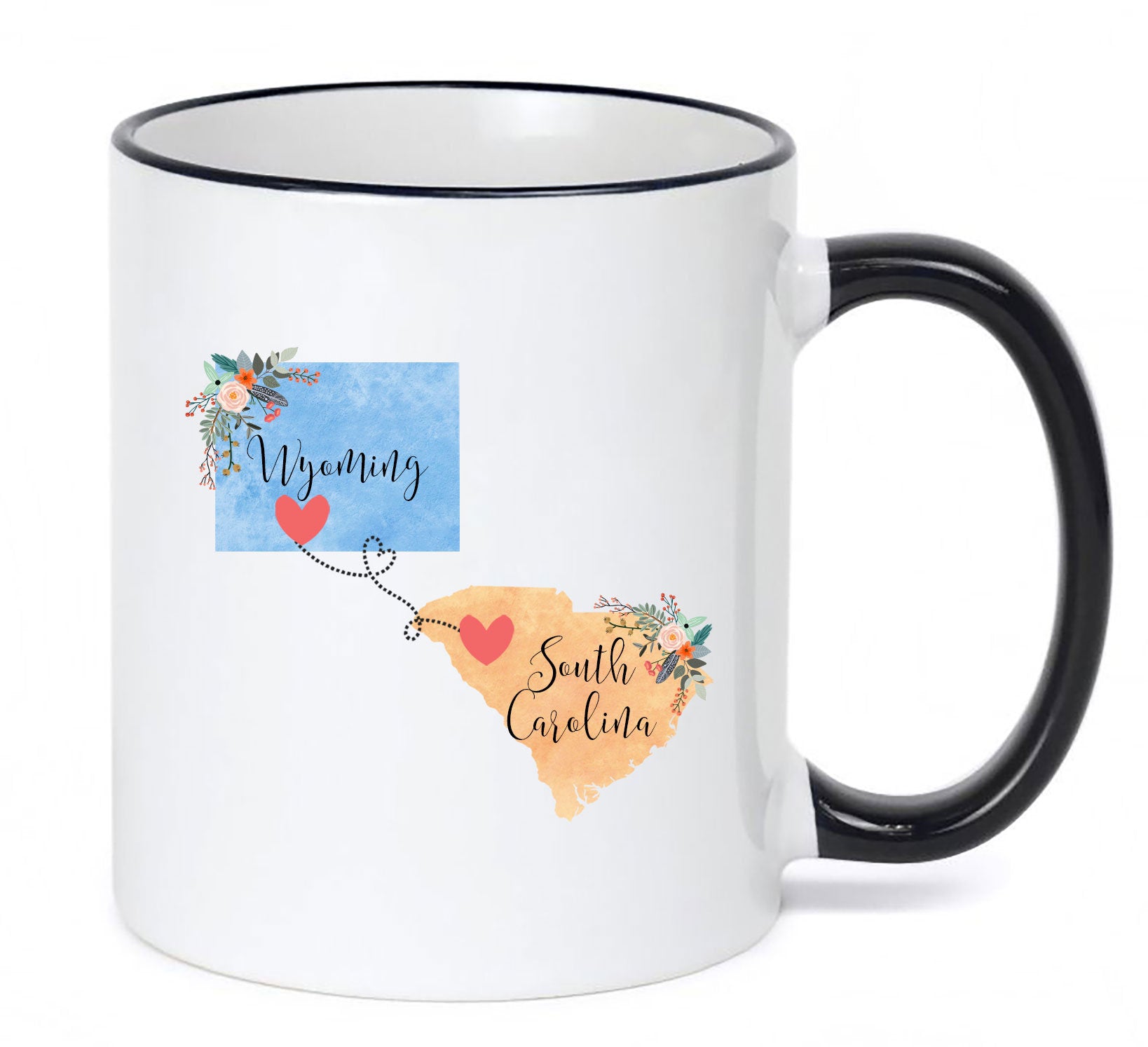 **No Delivery Dates Are Guaranteed. All shipping carriers are currently experiencing delays and transit times can be longer than normal. As a small business, we appreciate your patience and understanding that these circumstances are something that is out of our control. By purchasing this listing you are agreeing that you understand that the shipping date estimation may not be accurate.**South Carolina Wyoming Mug / Wyoming South Carolina Mug / South Carolina to Wyoming Gift / Wyoming to South Carolina Gift / 11 or 15 oz