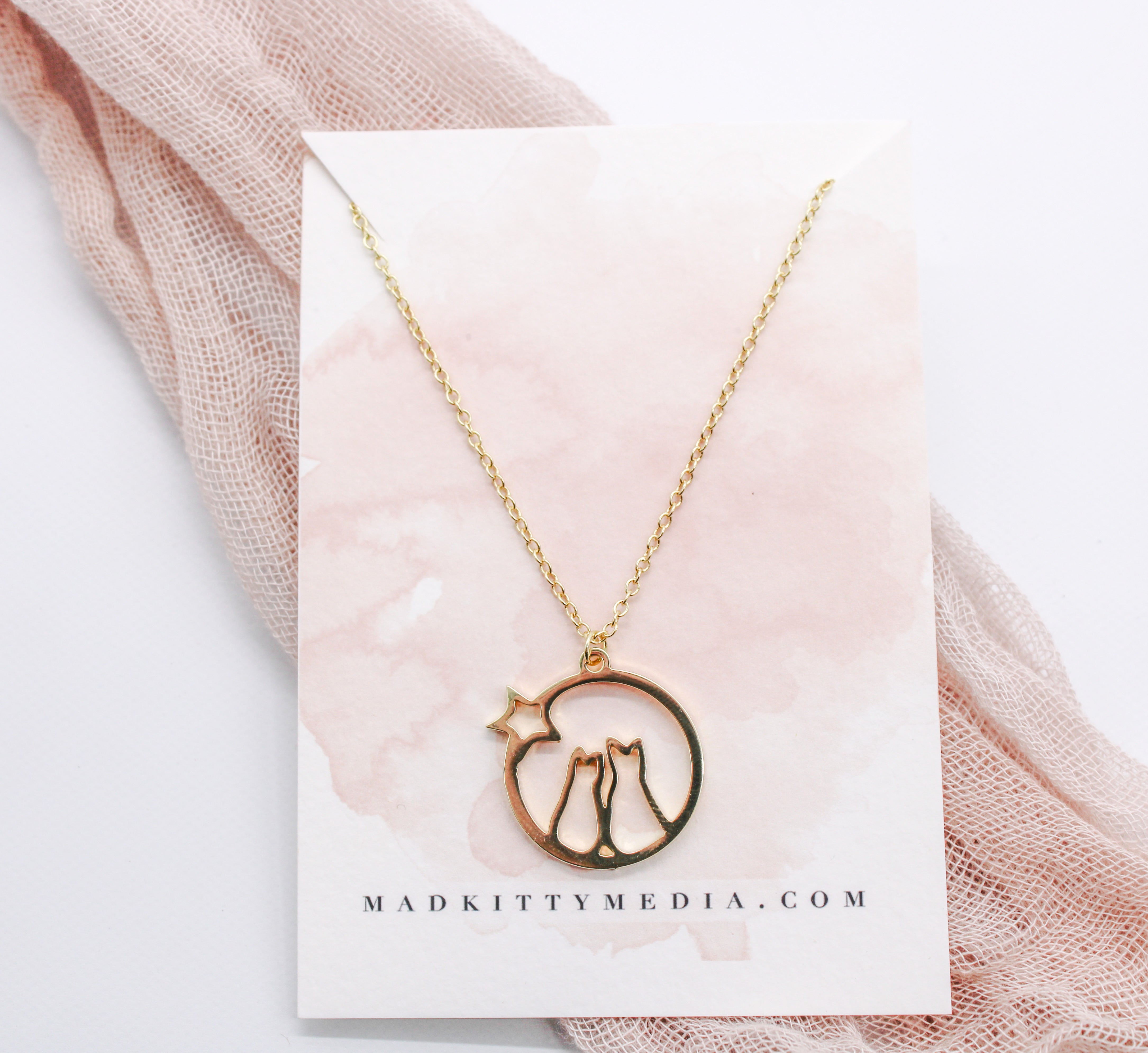 Starry night cat necklace is backordered and will ship as soon as it is back in stock.