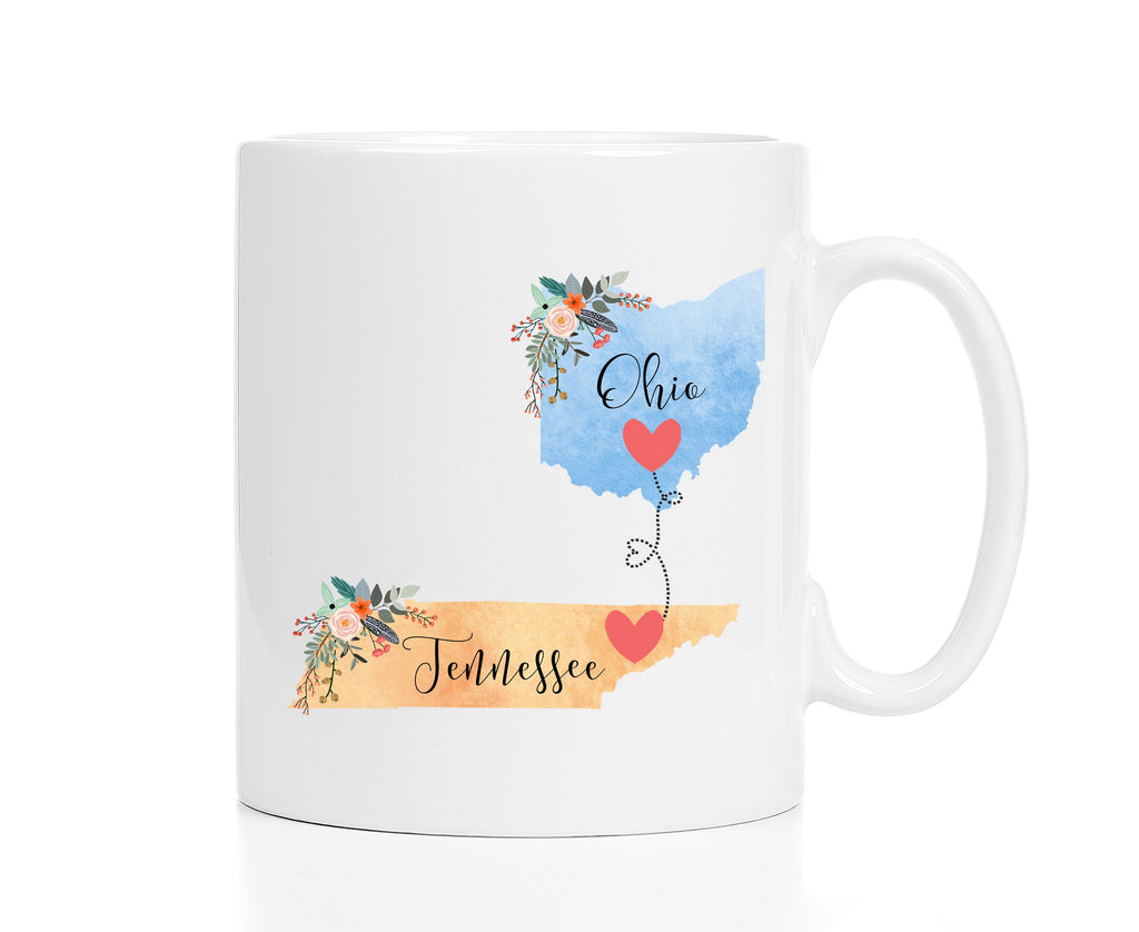 **No Delivery Dates Are Guaranteed. All shipping carriers are currently experiencing delays and transit times can be longer than normal. As a small business, we appreciate your patience and understanding that these circumstances are something that is out of our control. By purchasing this listing you are agreeing that you understand that the shipping date estimation may not be accurate.**Tennessee Ohio Mug / Ohio Tennessee Mug / Tennessee to Ohio Gift / Ohio to Tennessee Gift / 11 or 15 oz