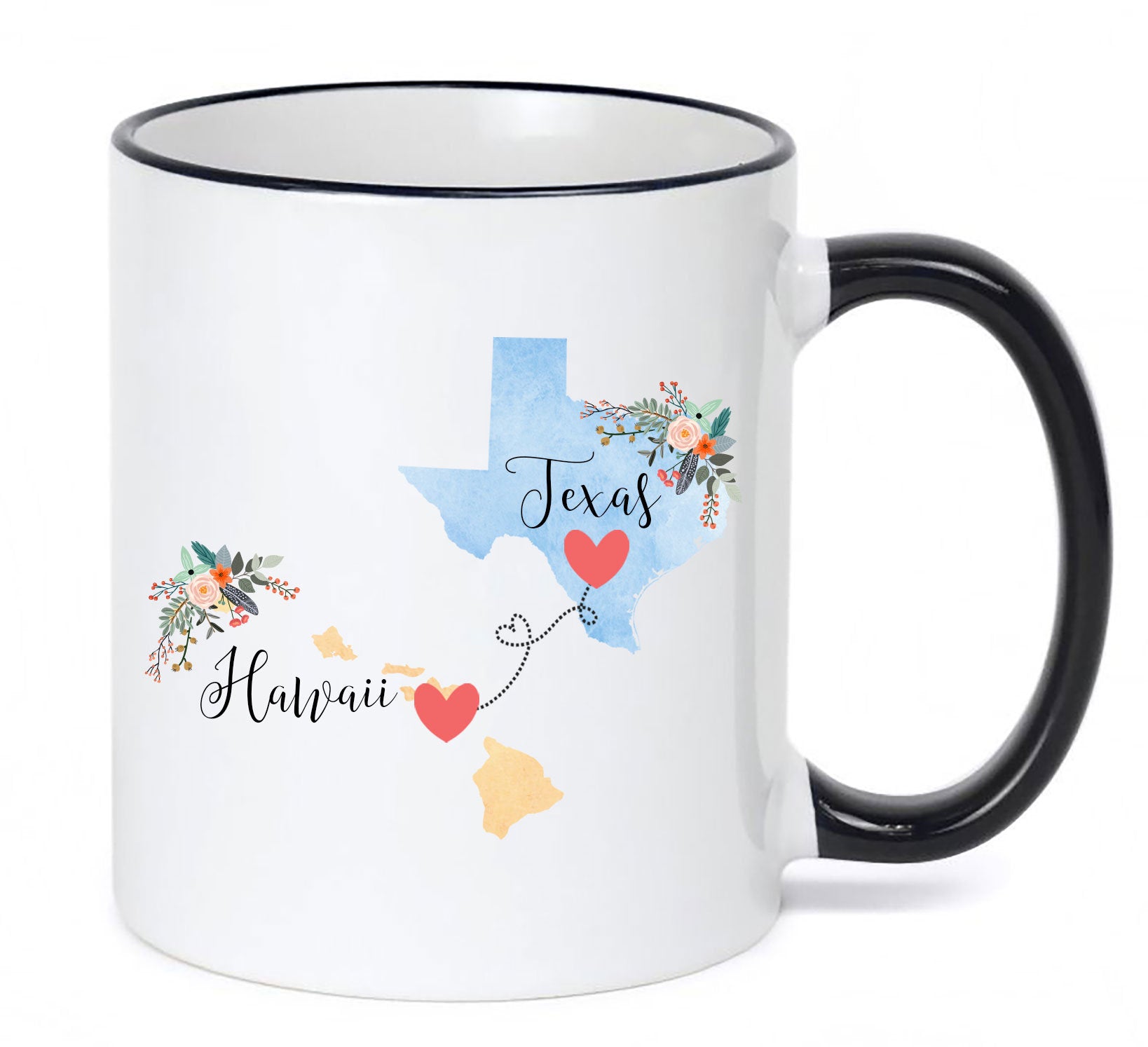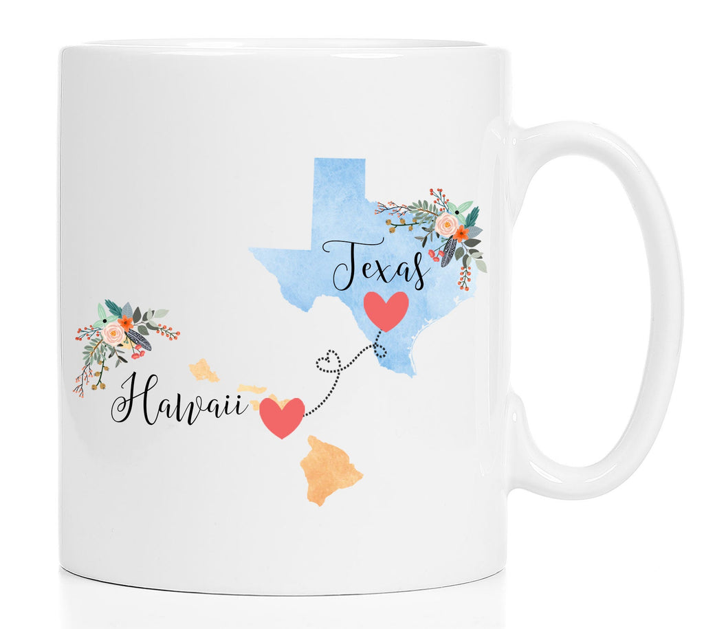 **No Delivery Dates Are Guaranteed. All shipping carriers are currently experiencing delays and transit times can be longer than normal. As a small business, we appreciate your patience and understanding that these circumstances are something that is out of our control. By purchasing this listing you are agreeing that you understand that the shipping date estimation may not be accurate.**Texas Hawaii Mug / Hawaii Texas Mug / Destination Mug / Texas to Hawaii Gift Coffee Cup / Moving Gift 11 or 15 oz