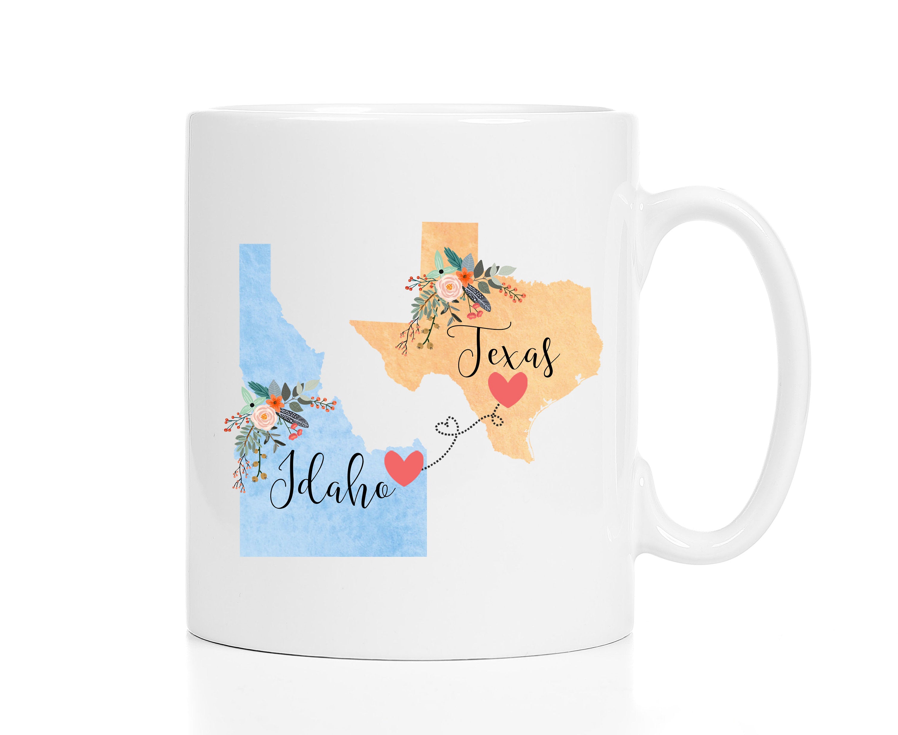 **No Delivery Dates Are Guaranteed. All shipping carriers are currently experiencing delays and transit times can be longer than normal. As a small business, we appreciate your patience and understanding that these circumstances are something that is out of our control. By purchasing this listing you are agreeing that you understand that the shipping date estimation may not be accurate.**Texas Idaho Mug / Idaho Texas Mug / Texas to Idaho Gift / Idaho to Texas Coffee Cup / 11 or 15 oz